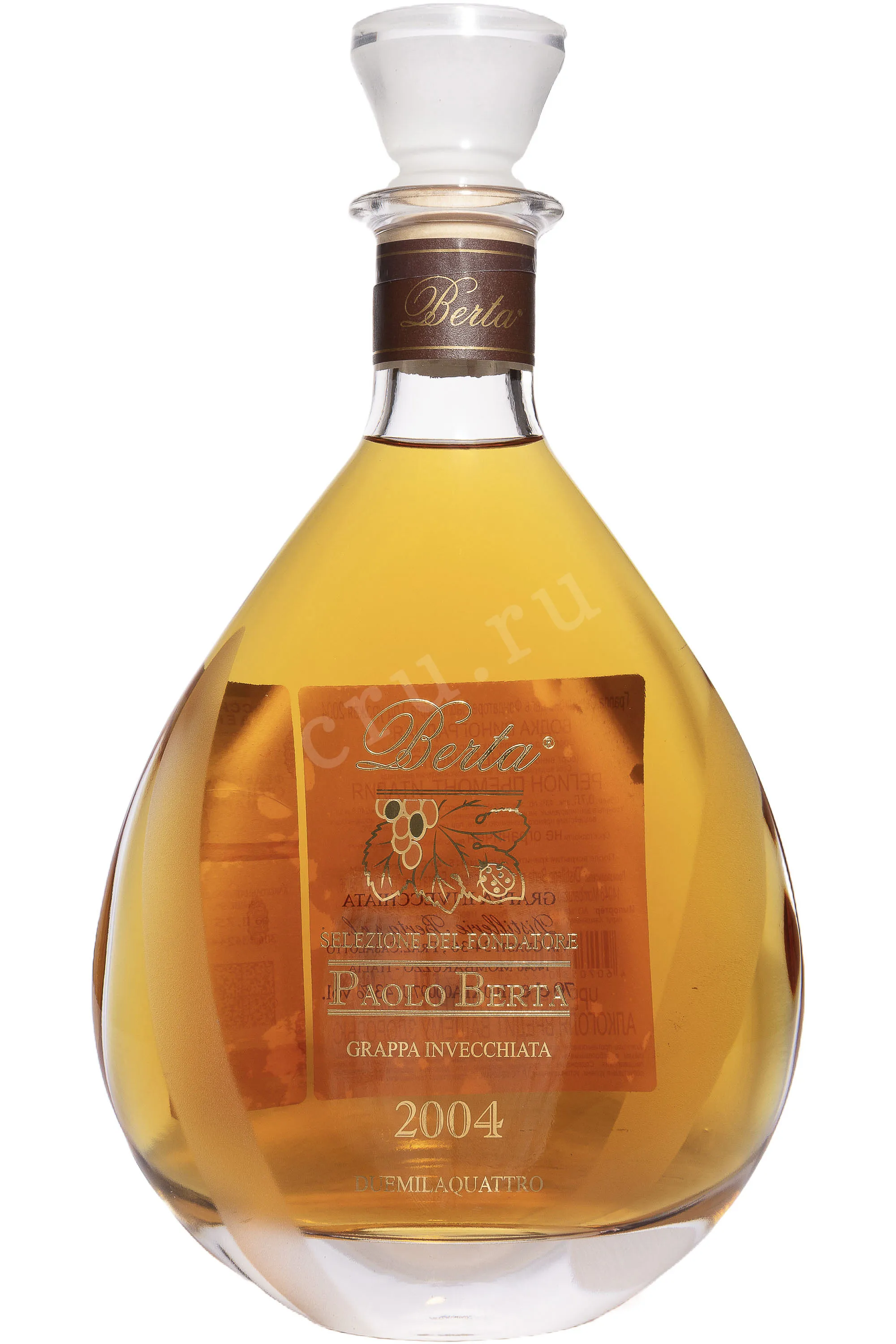 Граппа Berta Riserva Del Fondatore Paolo Berta 2004 г. 0,7 л создана в Пьемонте и отражает подход семейства дистилляторов к долгой выдержке и точной работе с виноградным сырьем. Напиток сделали из свежей виноградной выжимки, которую перегнали малыми партиями в медных аламбиках. Молодой спирт отправили на длительное созревание в бочках из разных пород дерева, где он сформировал сложный характер и плавную структуру. Для релиза 2004 года отобрали самые выразительные партии, которые провели в подвалах 20 лет. Такой срок создал гармонию между силой и мягкостью.