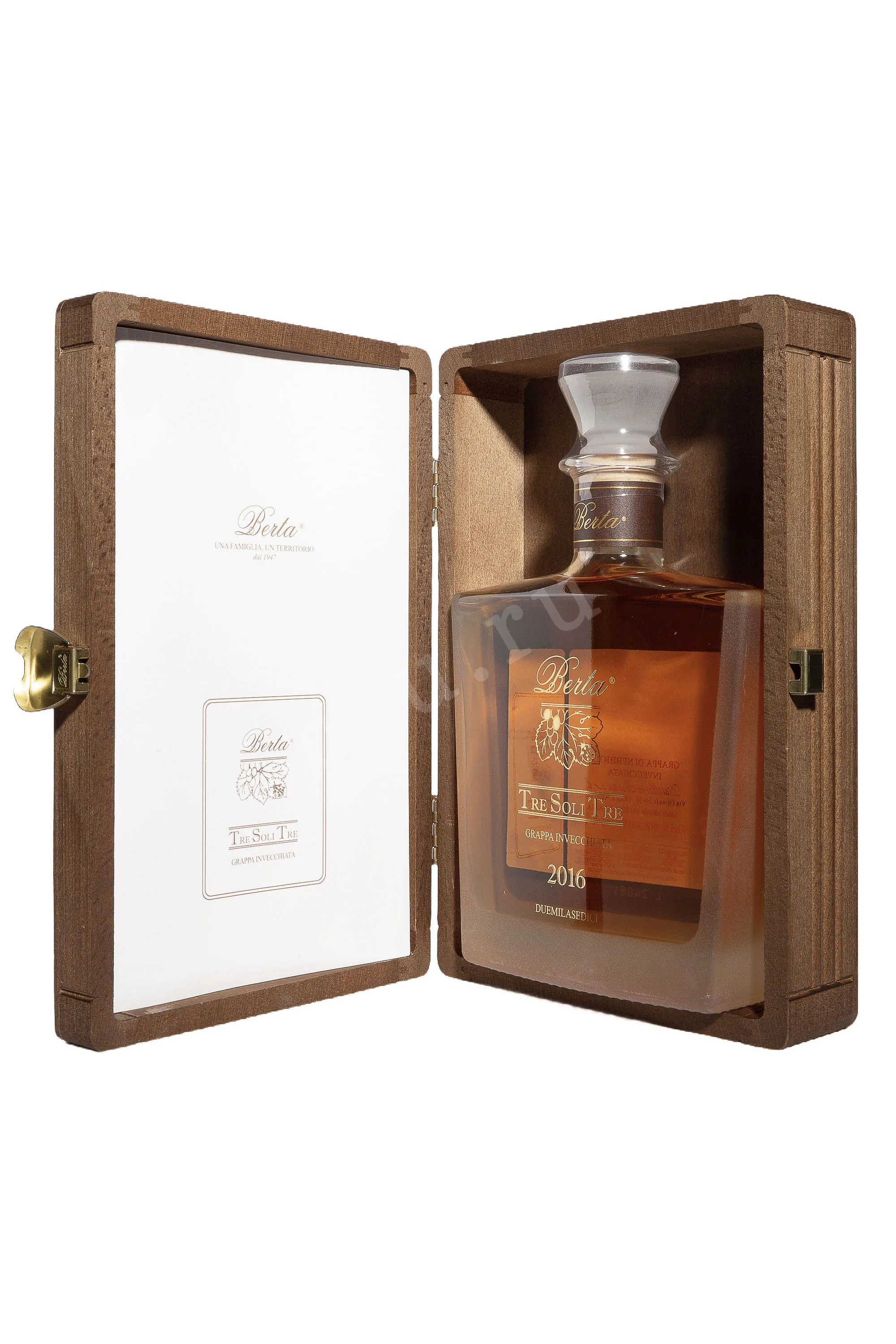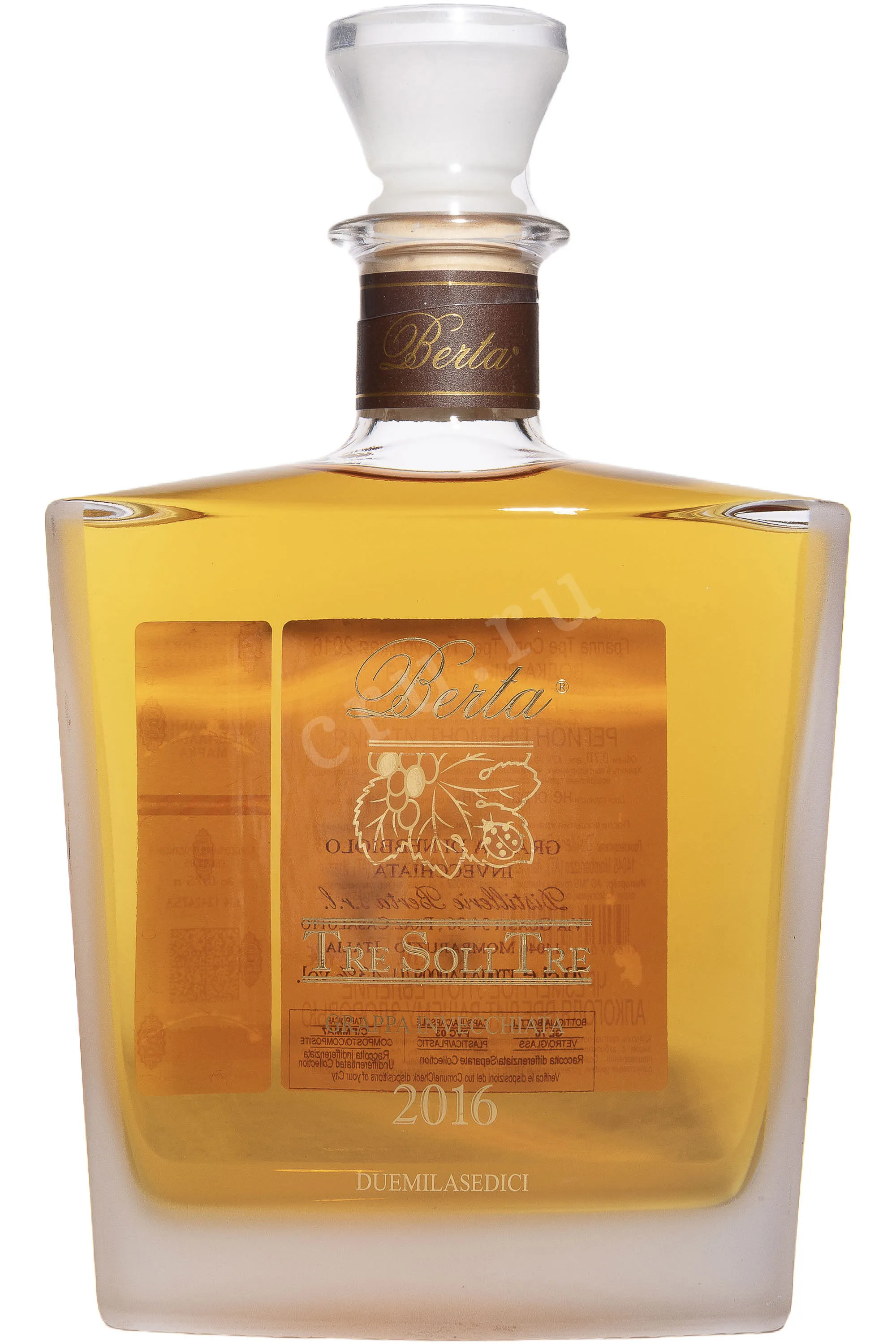 Граппа Berta Tre Soli Tre 2016 г. 0,7 л создана в Пьемонте и отражает идею семейной винокурни о чистоте и глубине спиртов, полученных из местного виноградного сырья. Напиток сделали из свежей выжимки красных сортов, которую перегнали сразу после отделения от сусла. Дистилляция проходила малыми партиями в медных аламбиках. Это позволило сохранить ароматическое ядро и создать спирт с мягкой структурой. Затем последовала выдержка в бочках разных типов на протяжении 8 лет.