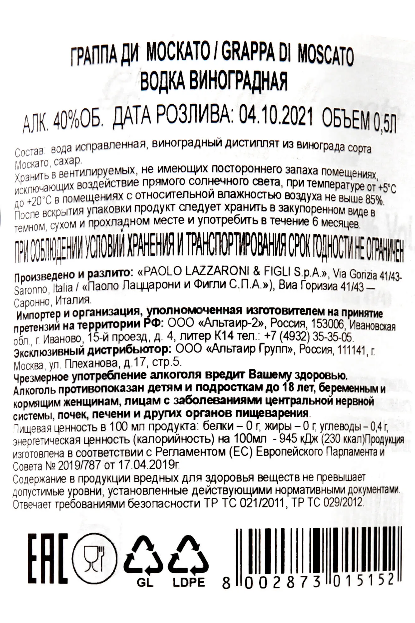 di Moscato Lazzaroni 0.5 л купить - Граппа ди Москато Лаццарони цена в магазине г. Москва, ул. Профсоюзная, д. 16/10 10:00-22:00 Ежедневно +7 (495) 920-20-02 info@cru.ru