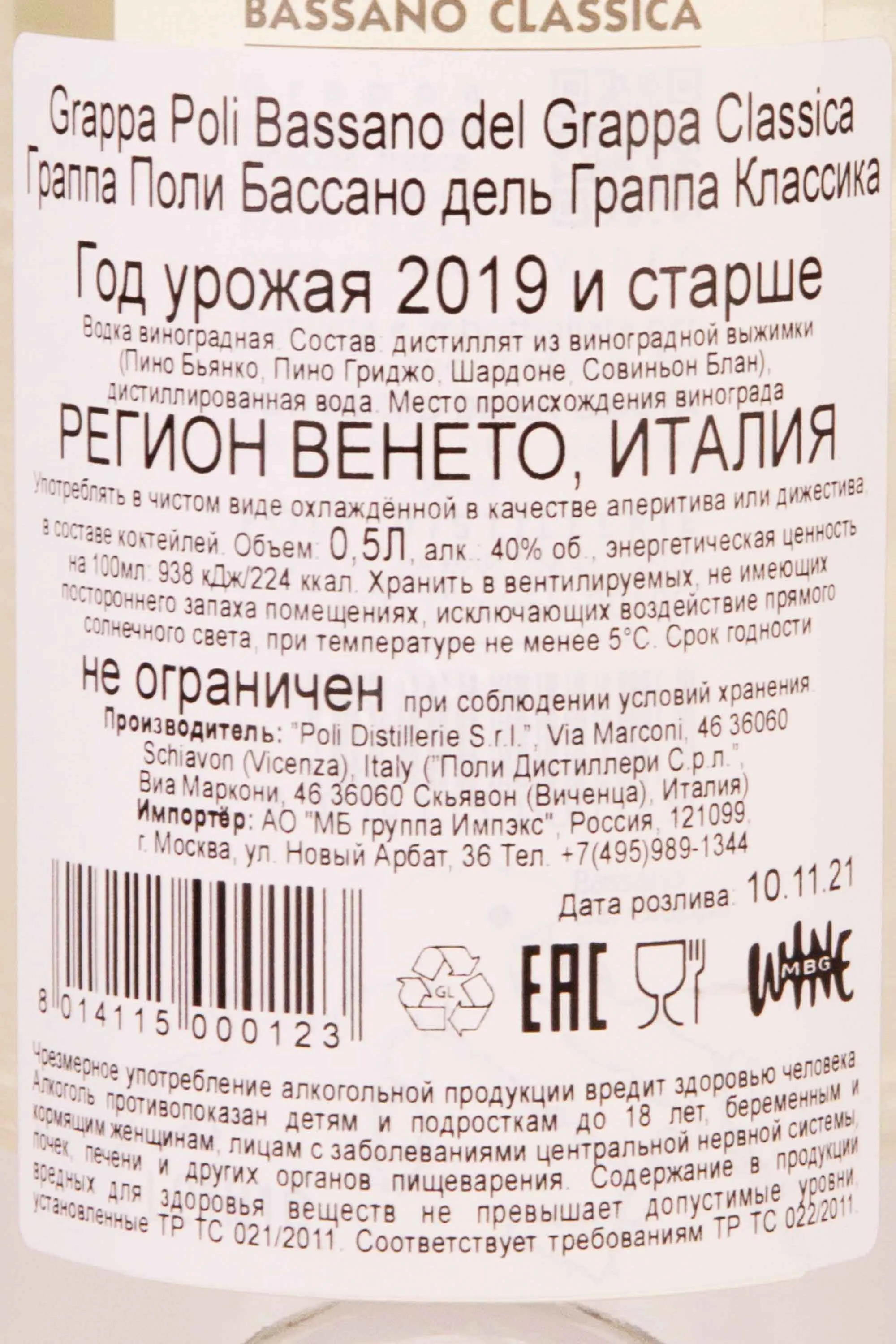 Poli Bassano del Grappa Classica 0.5 л купить - Граппа Поли Бассано дель Граппа Классика цена в магазинег. Москва, ул. Профсоюзная, д. 16/1010:00-22:00 Ежедневно+7 (495) 920-20-02info@cru.ru