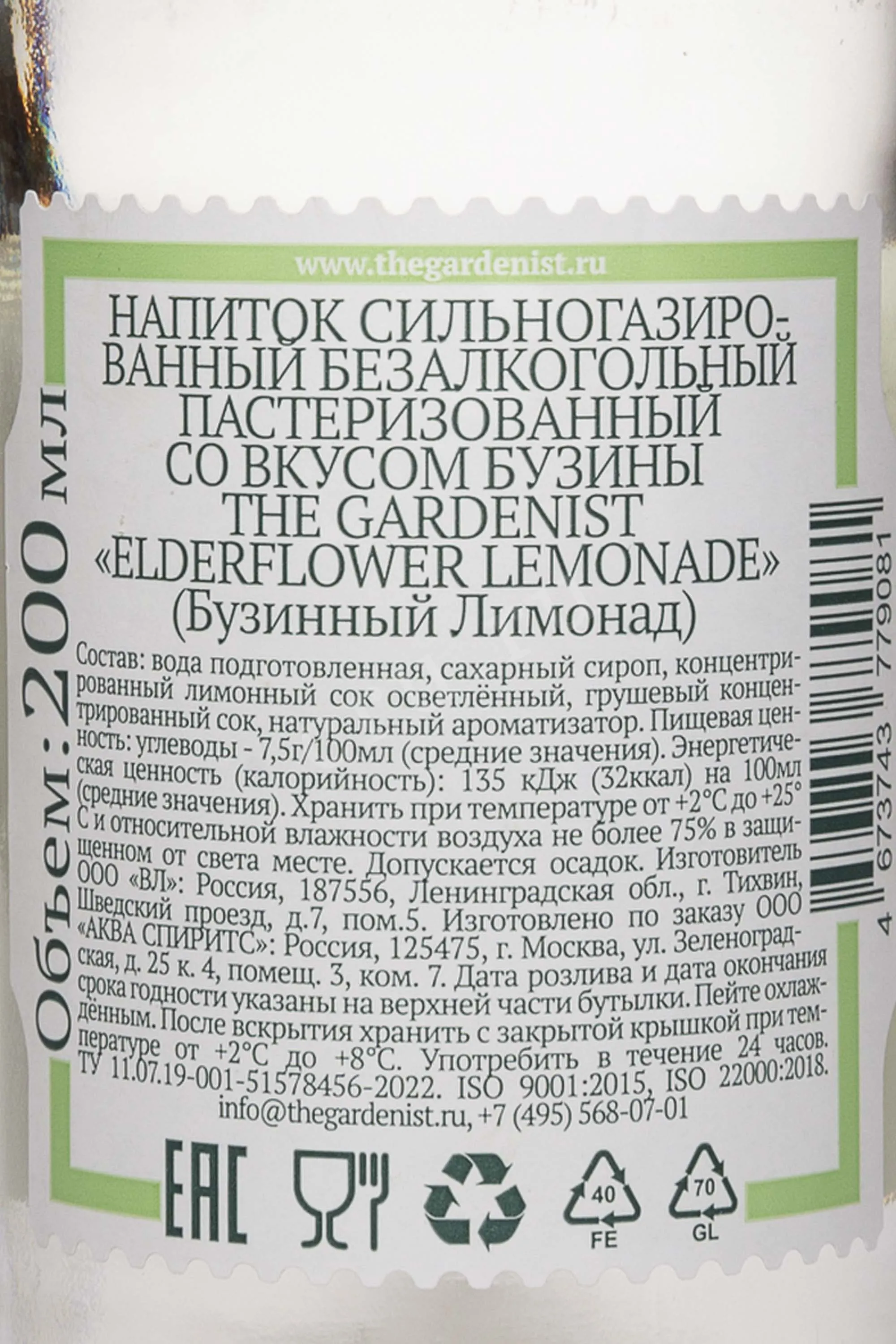 Лимонад The Gardenist Elderflower Lemonade 0.2 л — это натуральный газированный напиток с освежающим вкусом бузины и легкими цитрусовыми нотами. Он создан из специально очищенной воды, сахарного сиропа, сока груши и лимона. Производитель использует щадящую пастеризацию, чтобы сохранить чистоту вкуса и свежесть без добавления консервантов, красителей и стабилизаторов. Напиток отражает философию бренда — простота, натуральность и внимание к деталям. Его ценят за сбалансированное сочетание сладости и лёгкой кислинки. Этот лимонад может быть как самостоятельным освежающим напитком, так и основой для летних коктейлей.