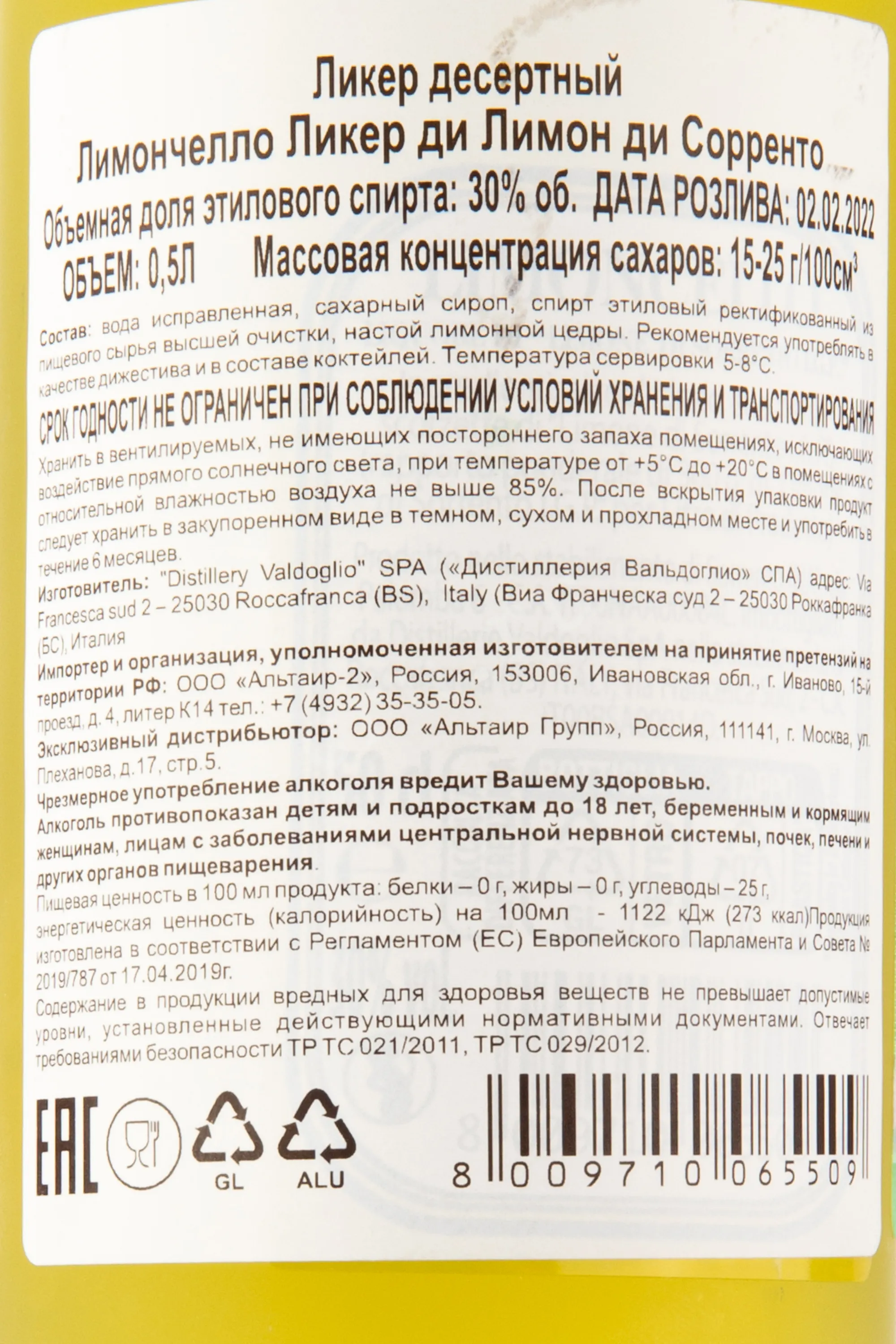 Limoncello di Sorrento 0.5 л