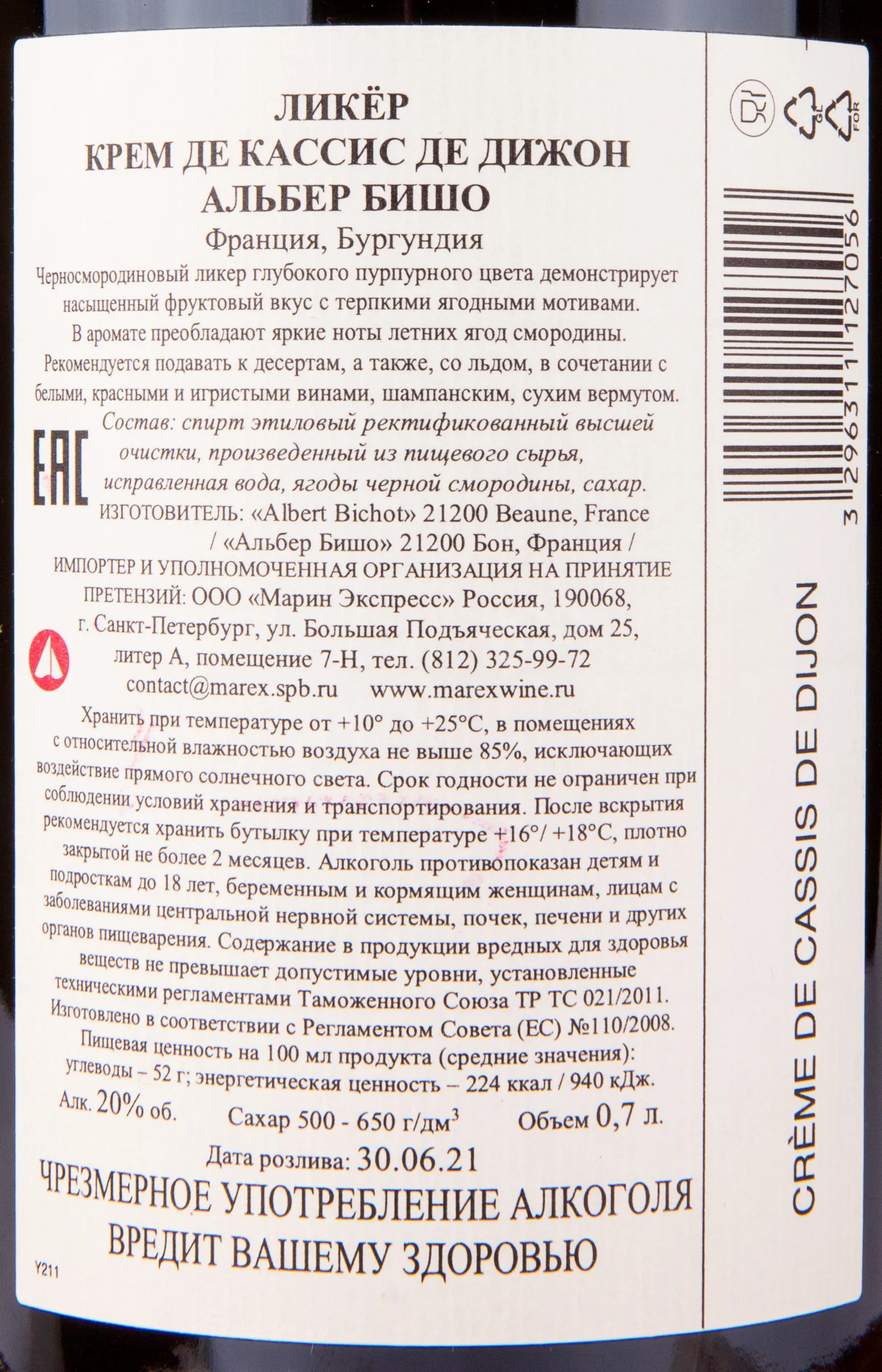 Ликер Albert Bichot Cream de Cassic de Dijon 0.7 l – это французский десертный алкоголь, изготовленный на основе спелых ягод черной смородины. Сырье мацерируют на первоклассном спирте в течение трех месяцев. На последних этапах производства готовый 20-процентный ликер разбавляют сахаром для сбалансирования кислотности.