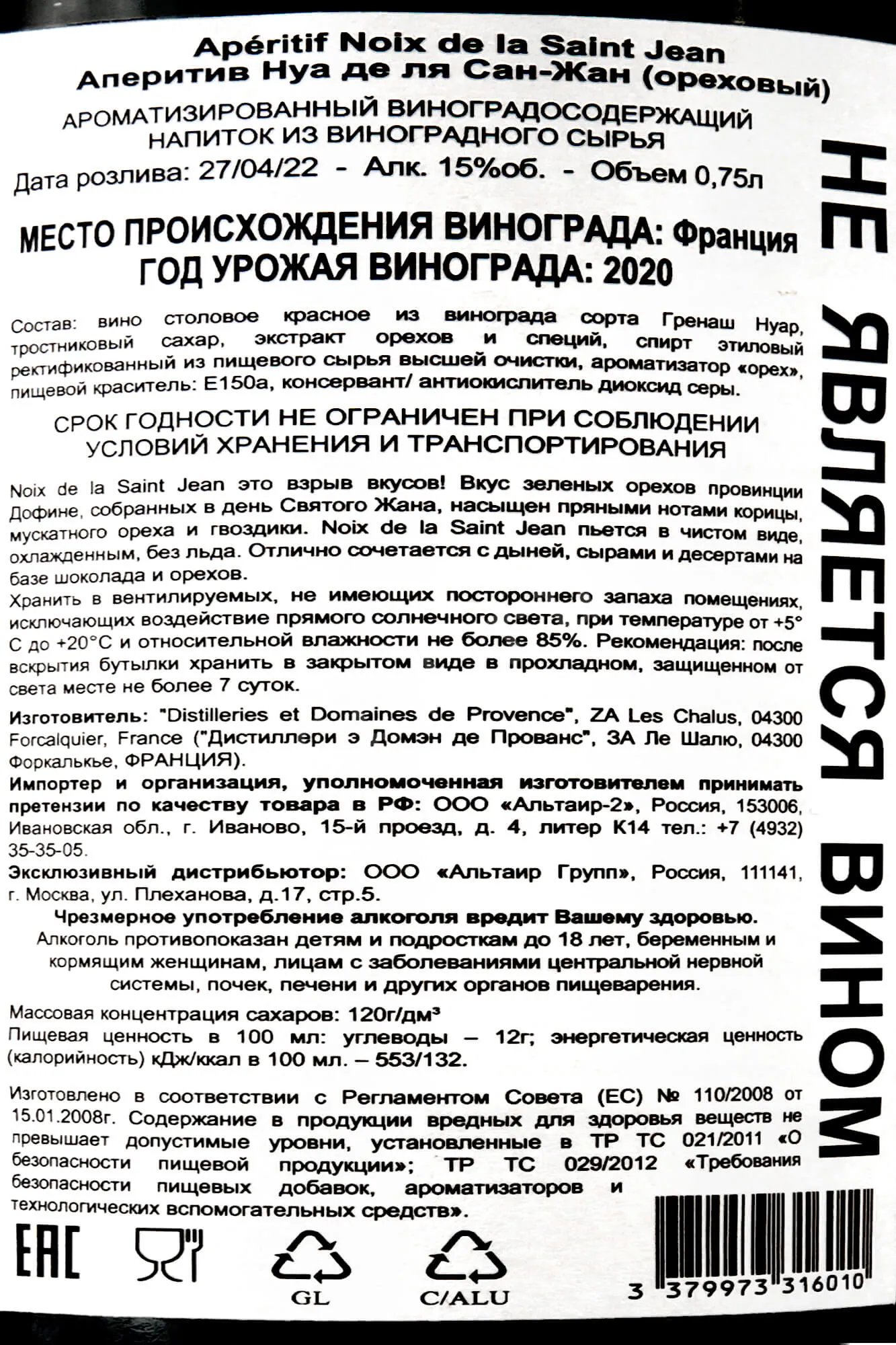 Аперитив Нуа де ля Сан-Жан Ореховый 0.75