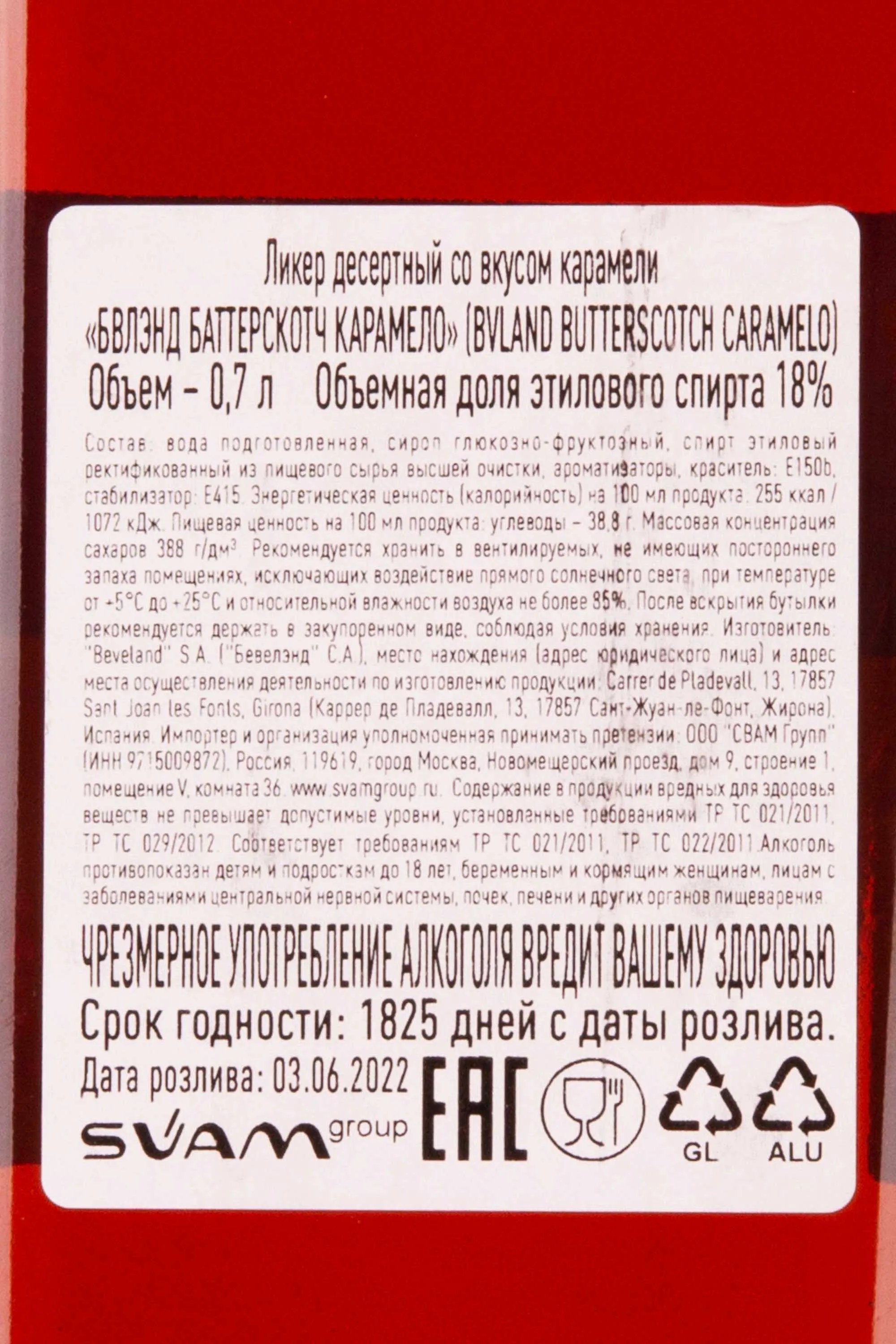 BVLand Butterscotch Caramelo 0.7 л купить - Ликер Бвлэнд Баттерскотч Карамело цена в магазине
