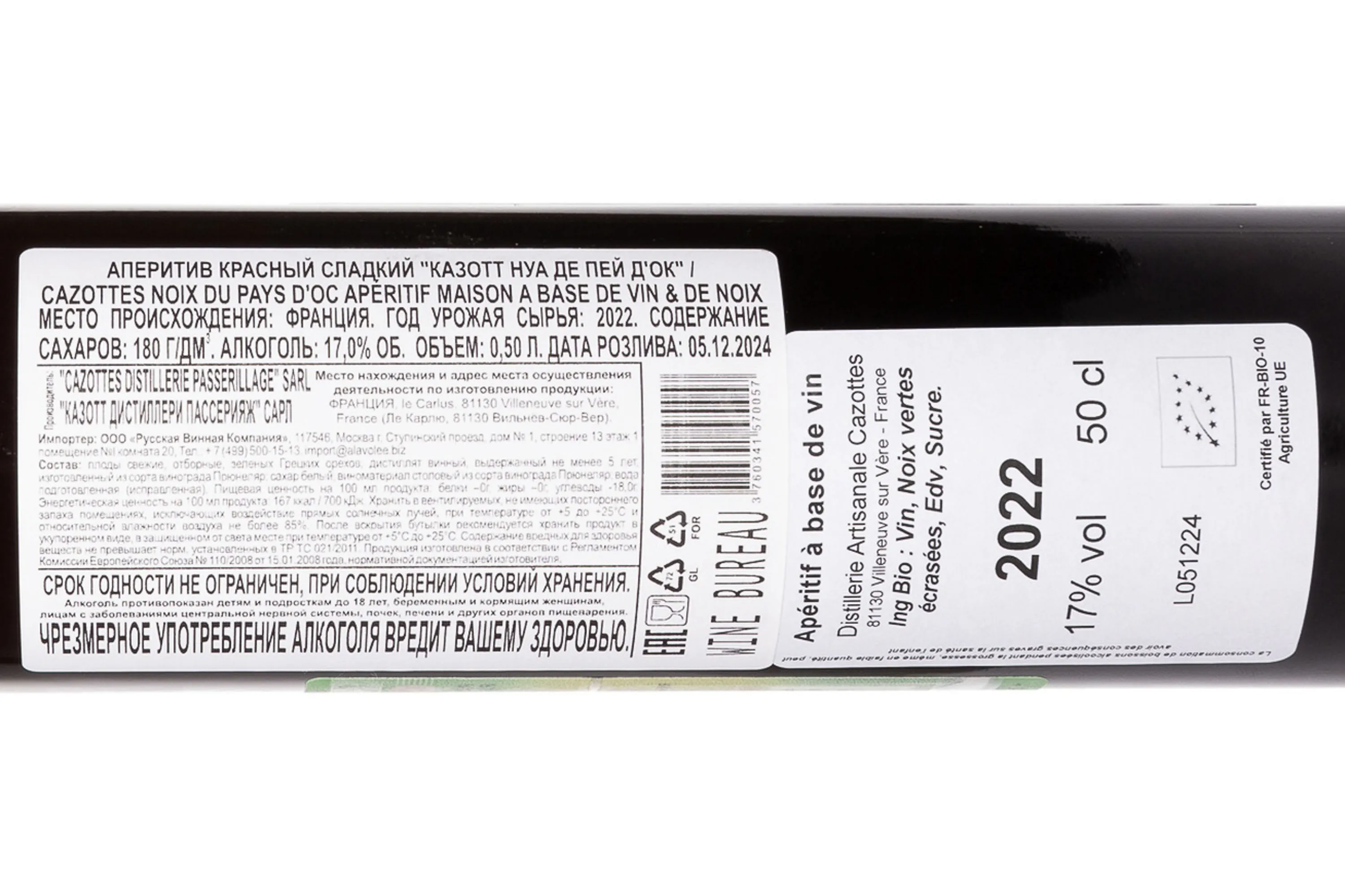 Ликер Cazottes Noix Vertes de Pays d'Oc 0,5 л — это редкий французский аперитив ручной работы, созданный по традиционной технологии. Он производится из зелёных грецких орехов, которые растут по краям виноградников. В качестве алкоголь основы используется 5-летний бренди. Процесс мацерации длится 36 недель. Такой способ придаёт ликёру глубину и мягкую горчинку. Его оригинальность заключается в добавлении в состав домашнего вина из редкого древнего красного сорта Прюнеляр. Этот напиток признан экспертами за выразительность и редкий стиль, характерный только для поместья Казотт. Его подают как самостоятельный аперитив или в сопровождении сыра, десертов и блюд высокой кухни.