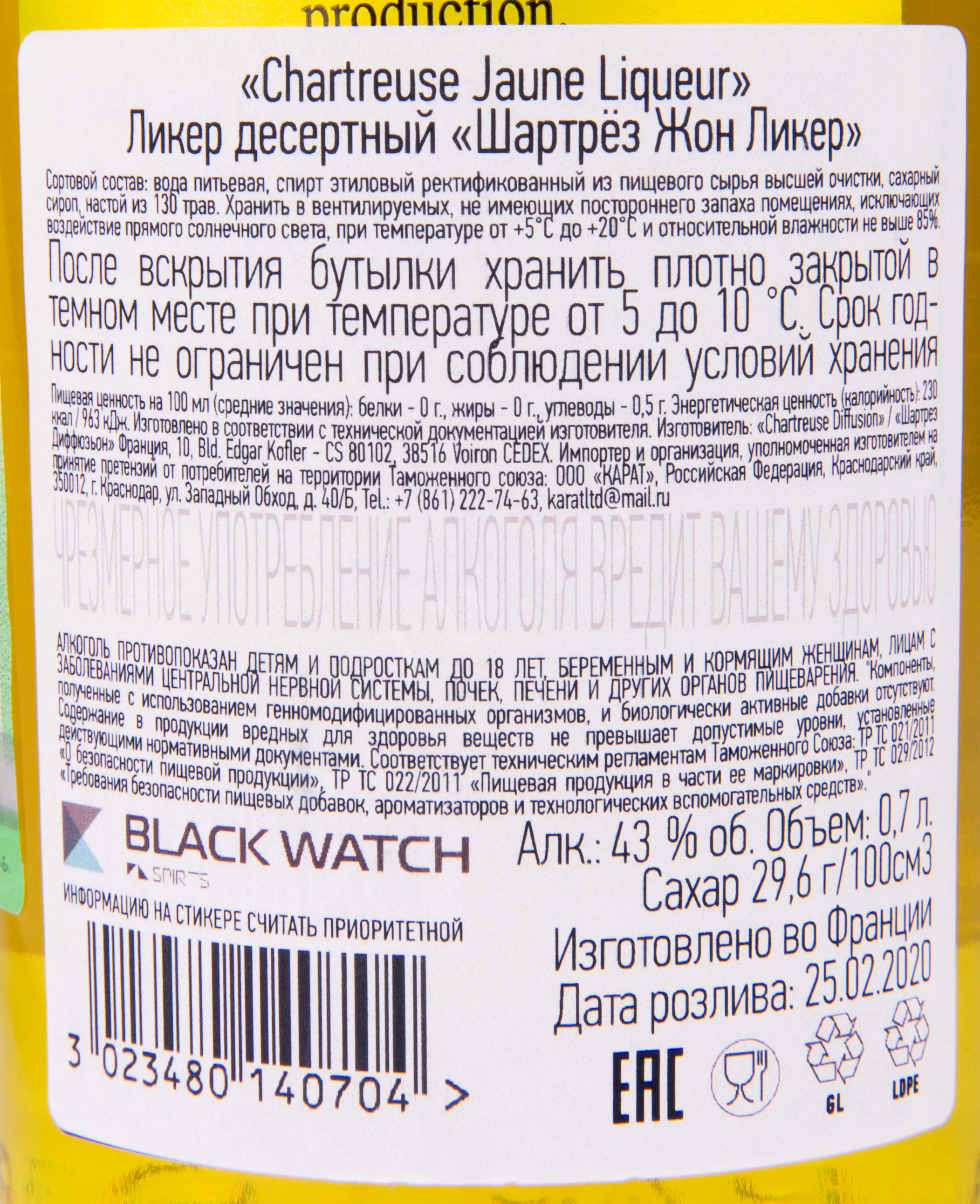Ликер Chartreuse Jaune 0.7 l – это крепкий французский алкоголь, изготовленный из 130 видов разнообразных трав и специй. Свой насыщенный цвет напиток приобретает благодаря шафрану. 43-процентный ликер был отмечен золотой медалью на дегустационном конкурсе в Сан-Франциско в 2008 году.