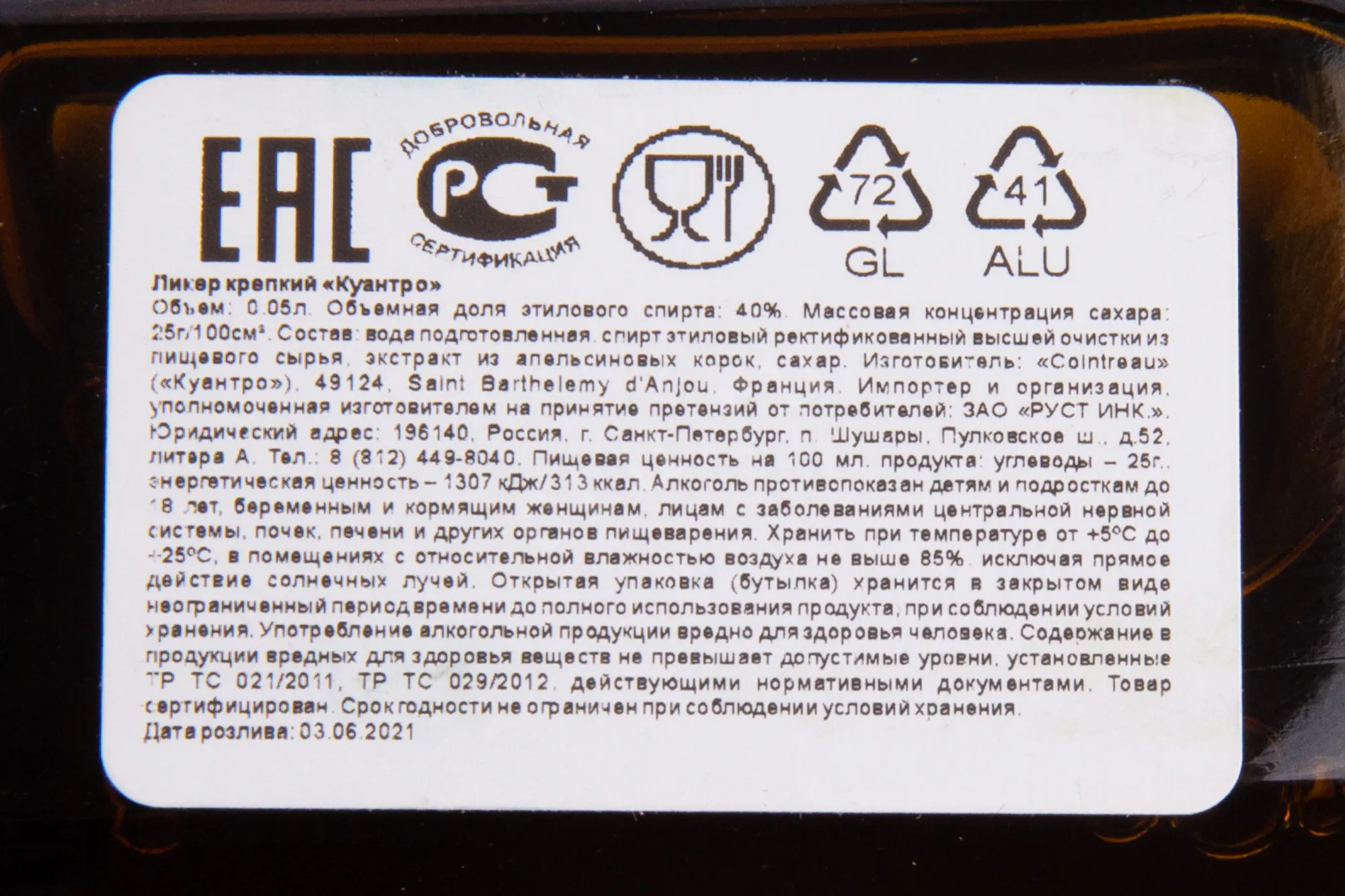 Cointreau 0.05 л купить - Ликер Куантро цена в магазине