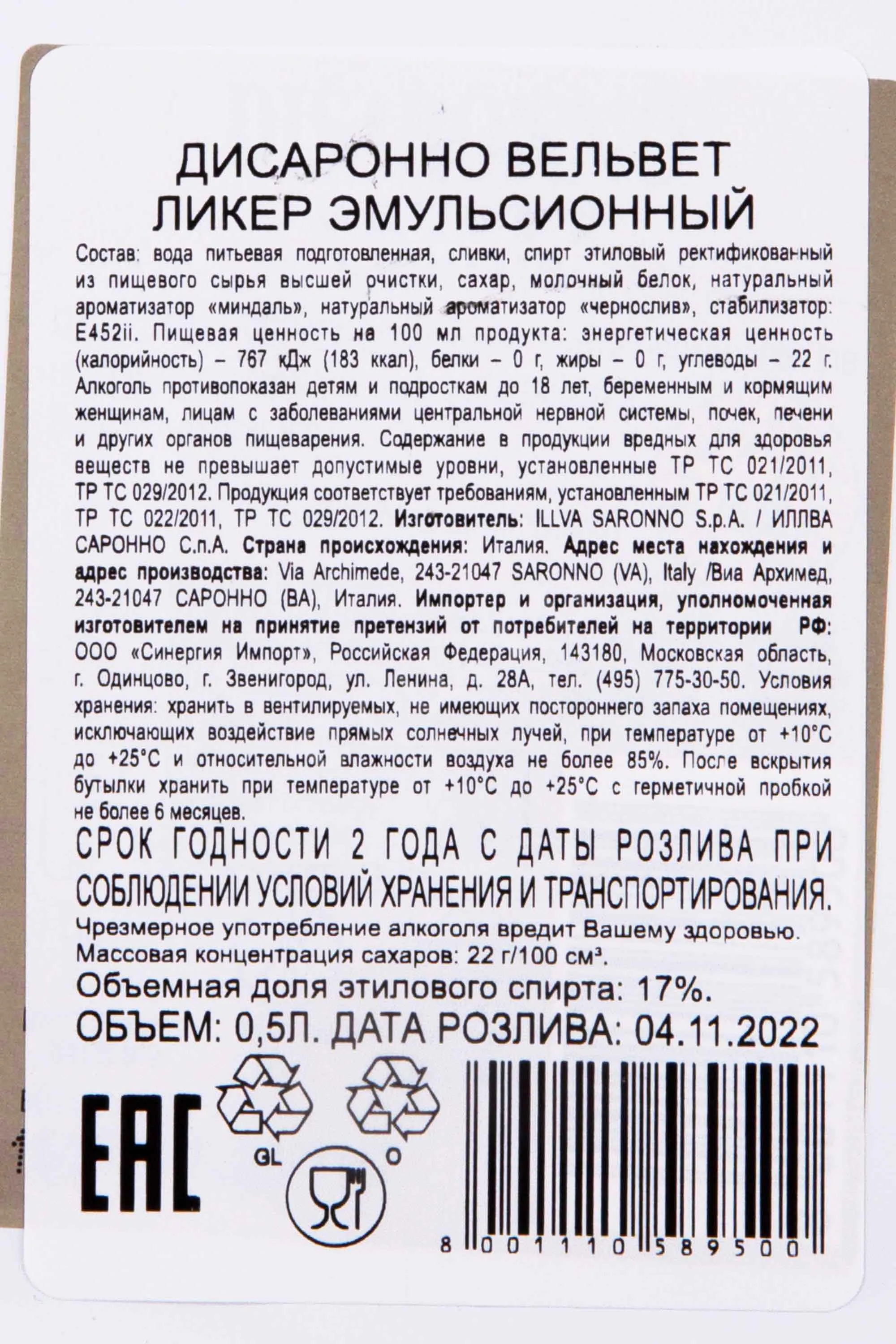Disaronno Velvet 0.5 л купить - Ликер Дисаронно Вельвет цена в магазине