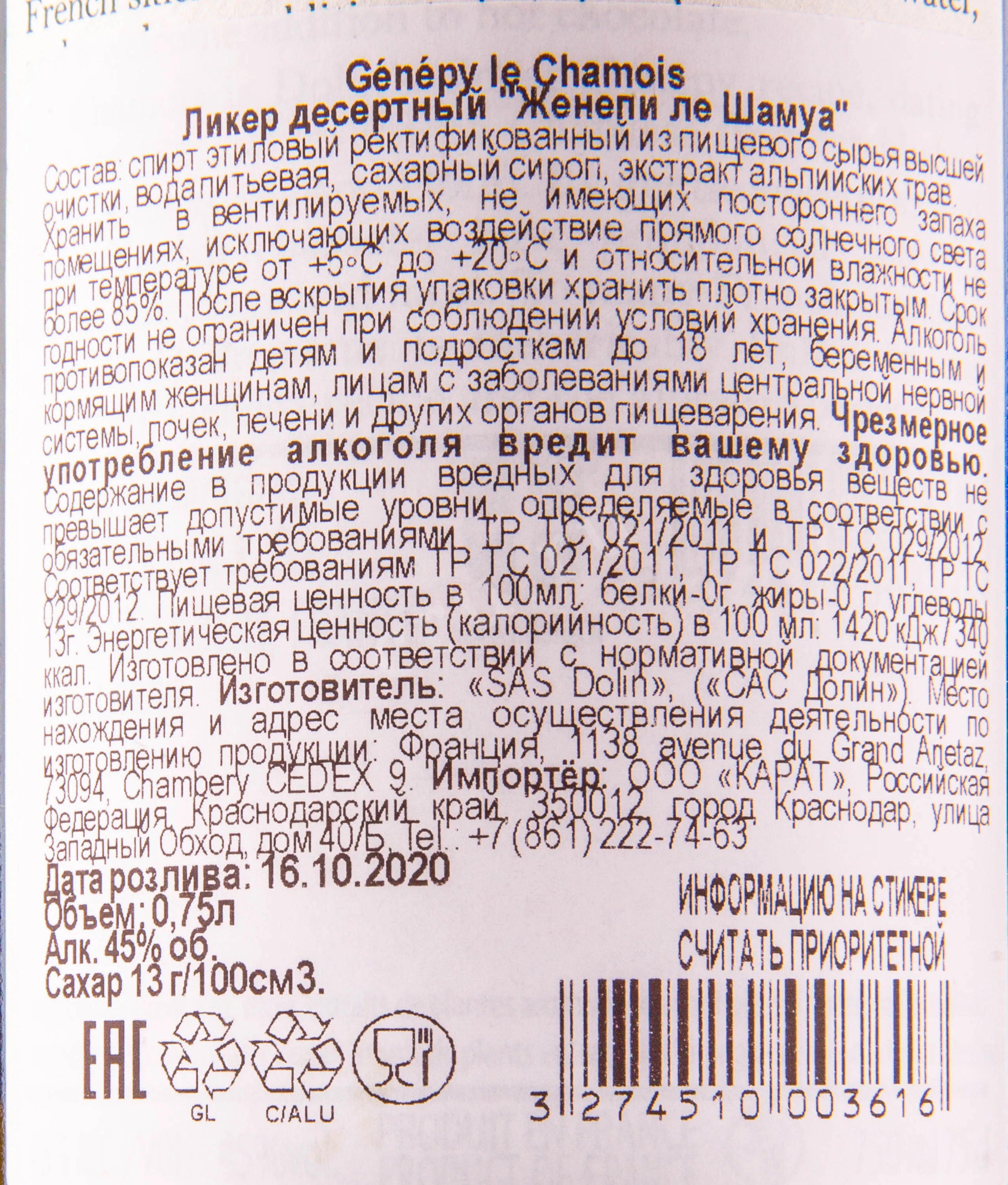 Ликер Genepi le Chamois 0.75 l – это французский десертный алкоголь, впервые выпущенный в 1815 году. 45-процентный напиток создан из экстрактов альпийских трав, среди которых доминирующей является горькая полынь, собранная в Савойе.