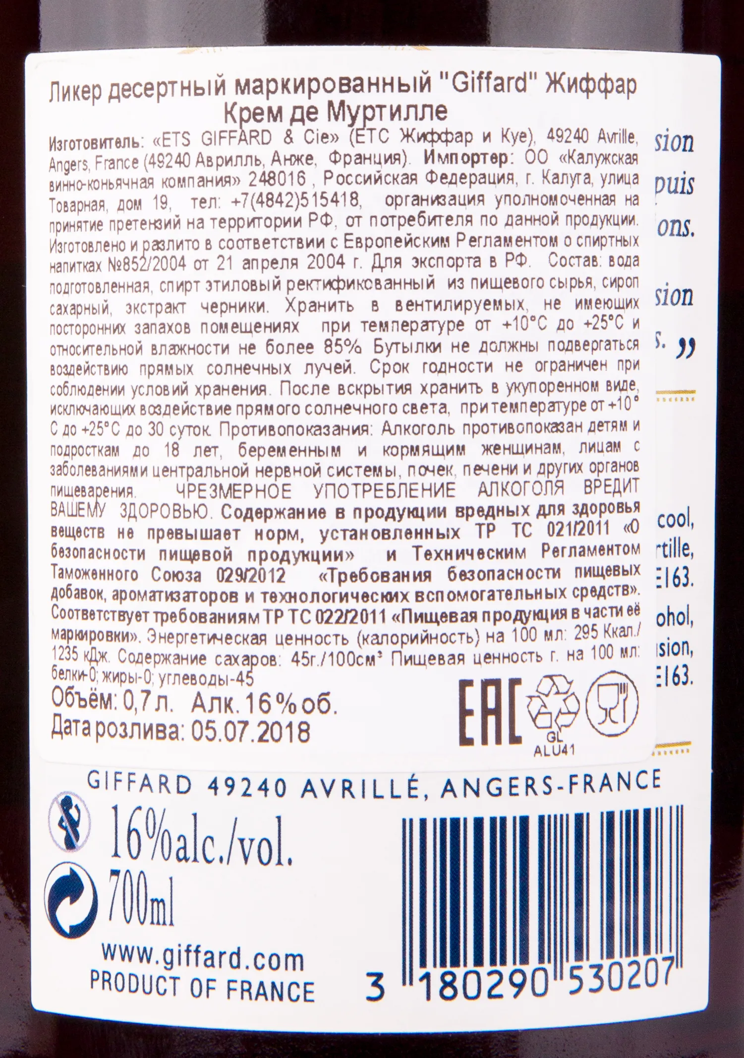 Giffard Creme de Myrtille 0.7 л купить - Ликер Жиффар Голубика цена в магазине