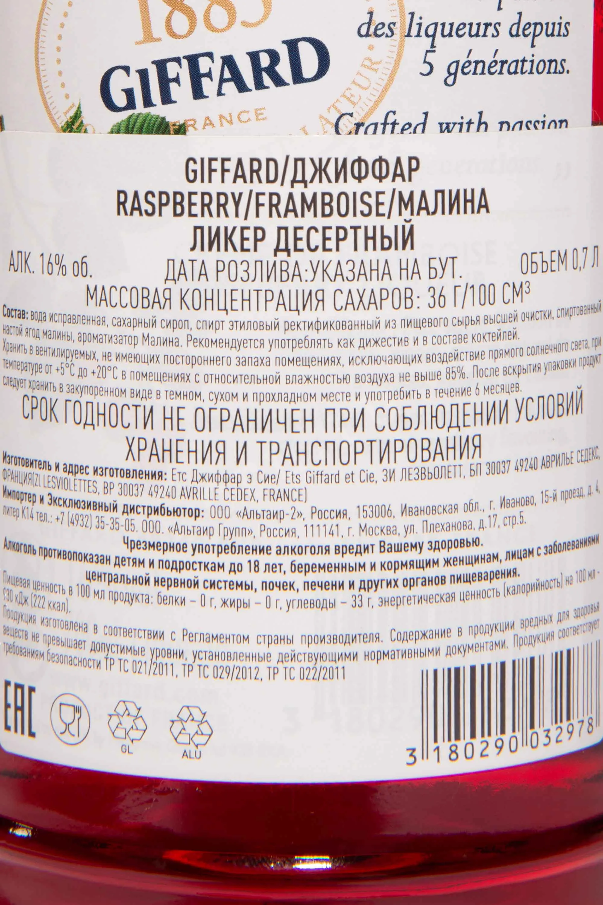 Giffard Framboise 0.7 л купить - Ликер Джиффар Малина цена в магазине