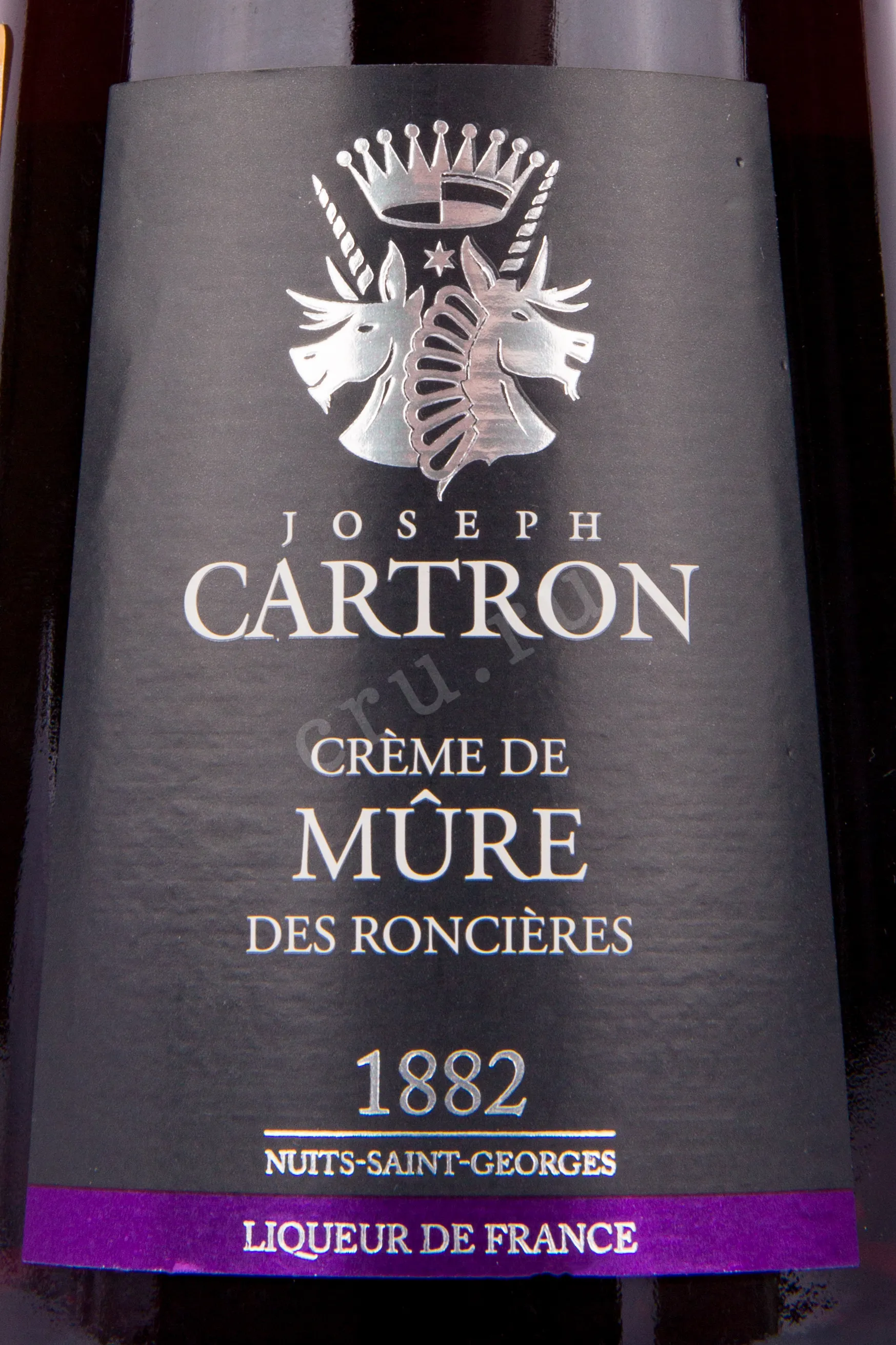 Ликер Joseph Cartron Creme de Mure de Roncieres 0.7 l изготавливается из экстракта ежевики, культивируемой во Франции. Собранные на пике зрелости ягоды настаивают на спиртовой основе около месяца, после чего смешивают с сахаром для стабилизации вкуса. 18-процентный напиток был отмечен серебряной медалью на конкурсе спиртного в Лондоне.