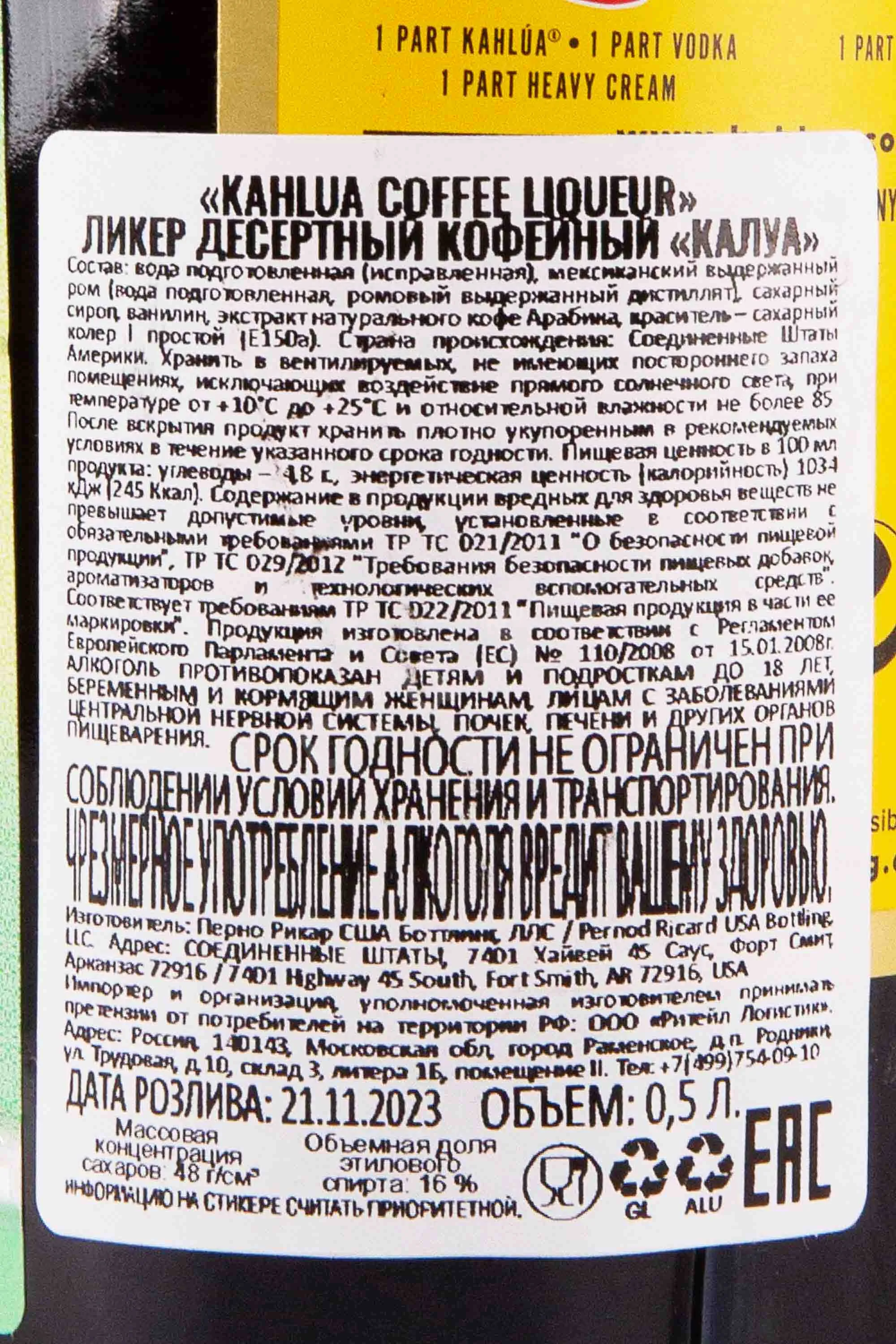 Kahlua Coffee 0.5 л купить - Ликер Калуа Кофейный цена в магазинег. Москва, ул. Профсоюзная, д. 16/1010:00-22:00 Ежедневно+7 (495) 920-20-02info@cru.ru