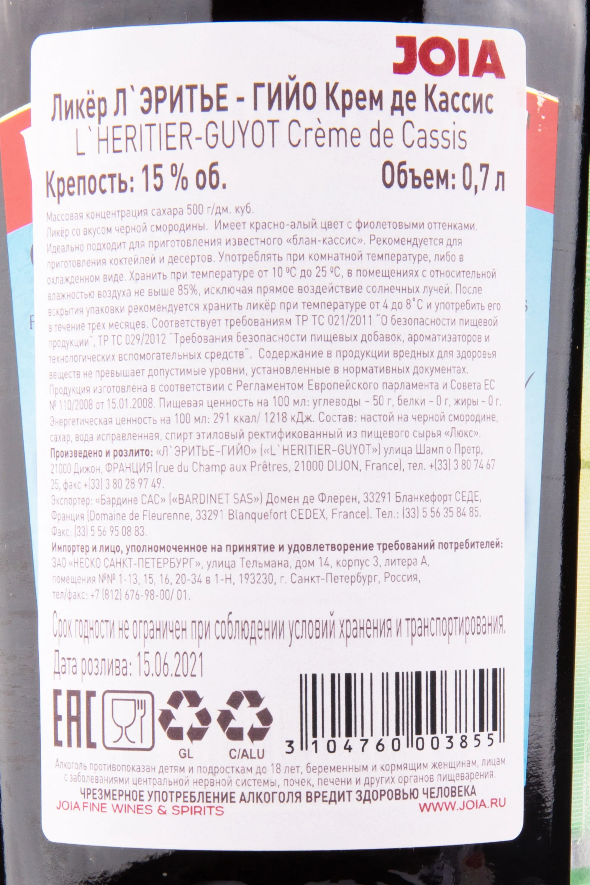 L'Heritier-Guyot Cassis 0.7 л купить - Ликер Л'Эритье-Гюйо Черная смородина цена в магазине