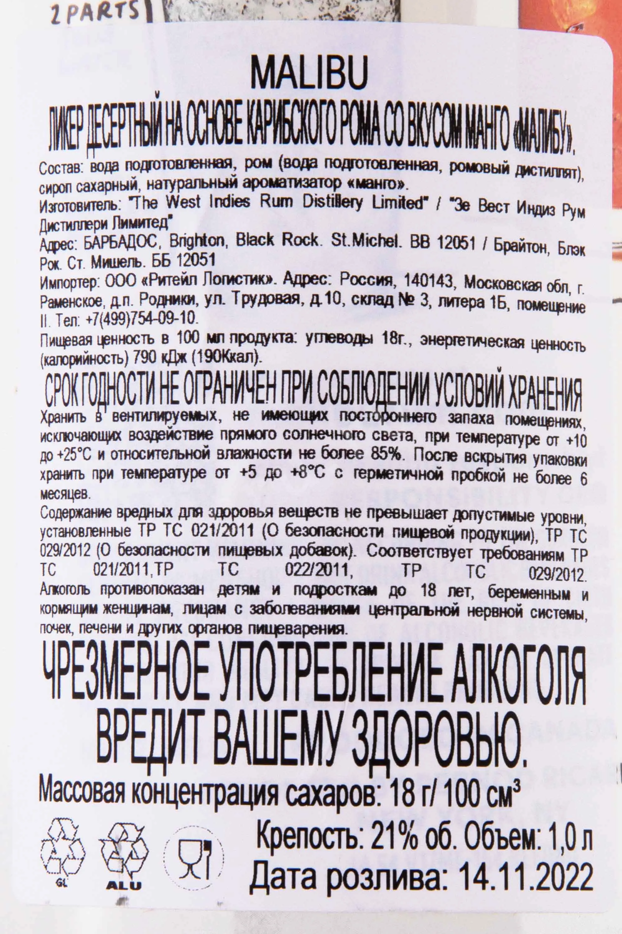 Malibu Mango 1 л купить - Ликер Малибу Манго цена в магазине