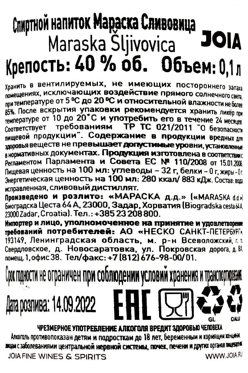 Мараска Сливовица 0.1
