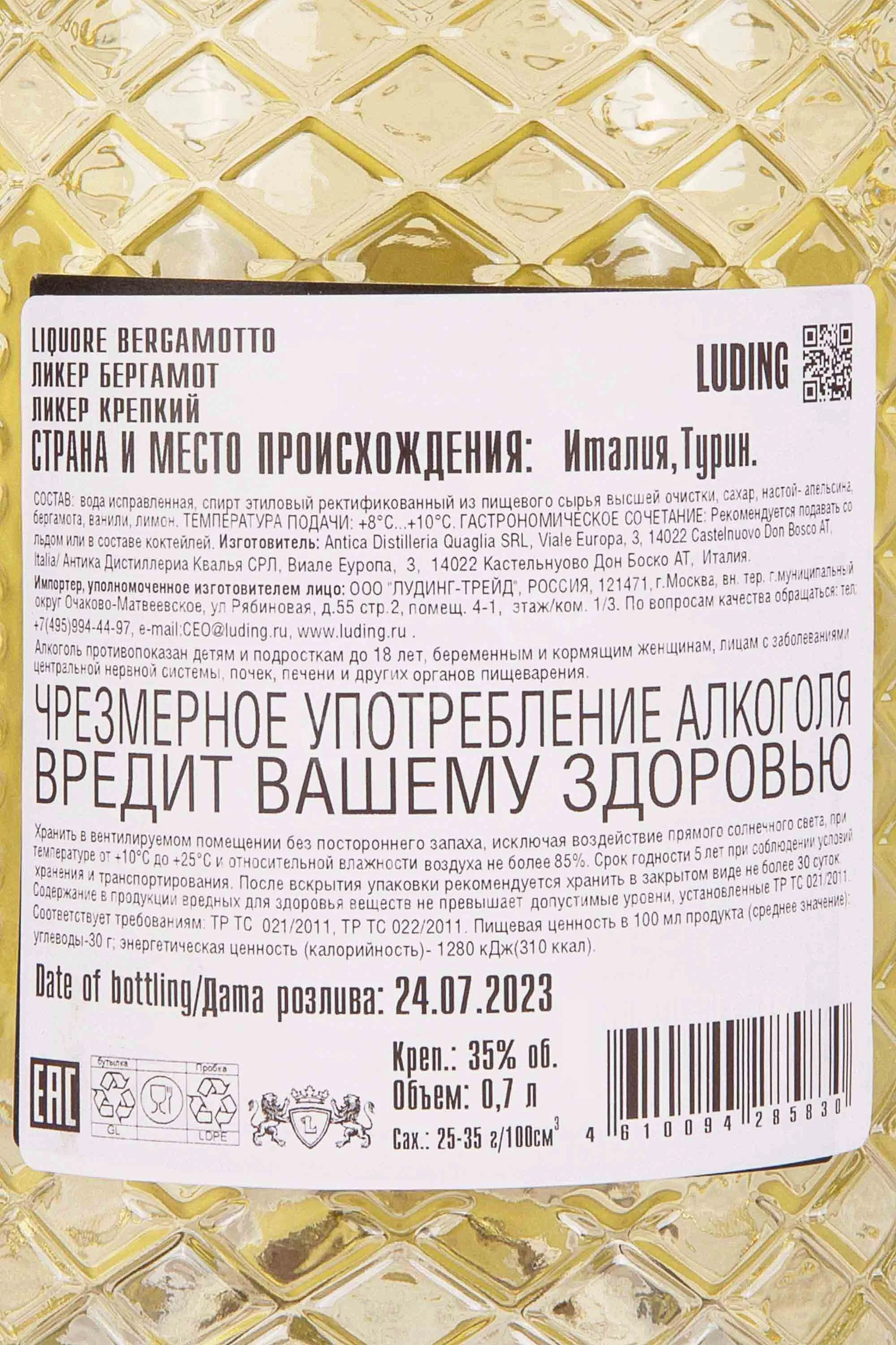 Quaglia Bergamotto 0.7 л купить - Ликер Куалья Бергамот цена в магазине