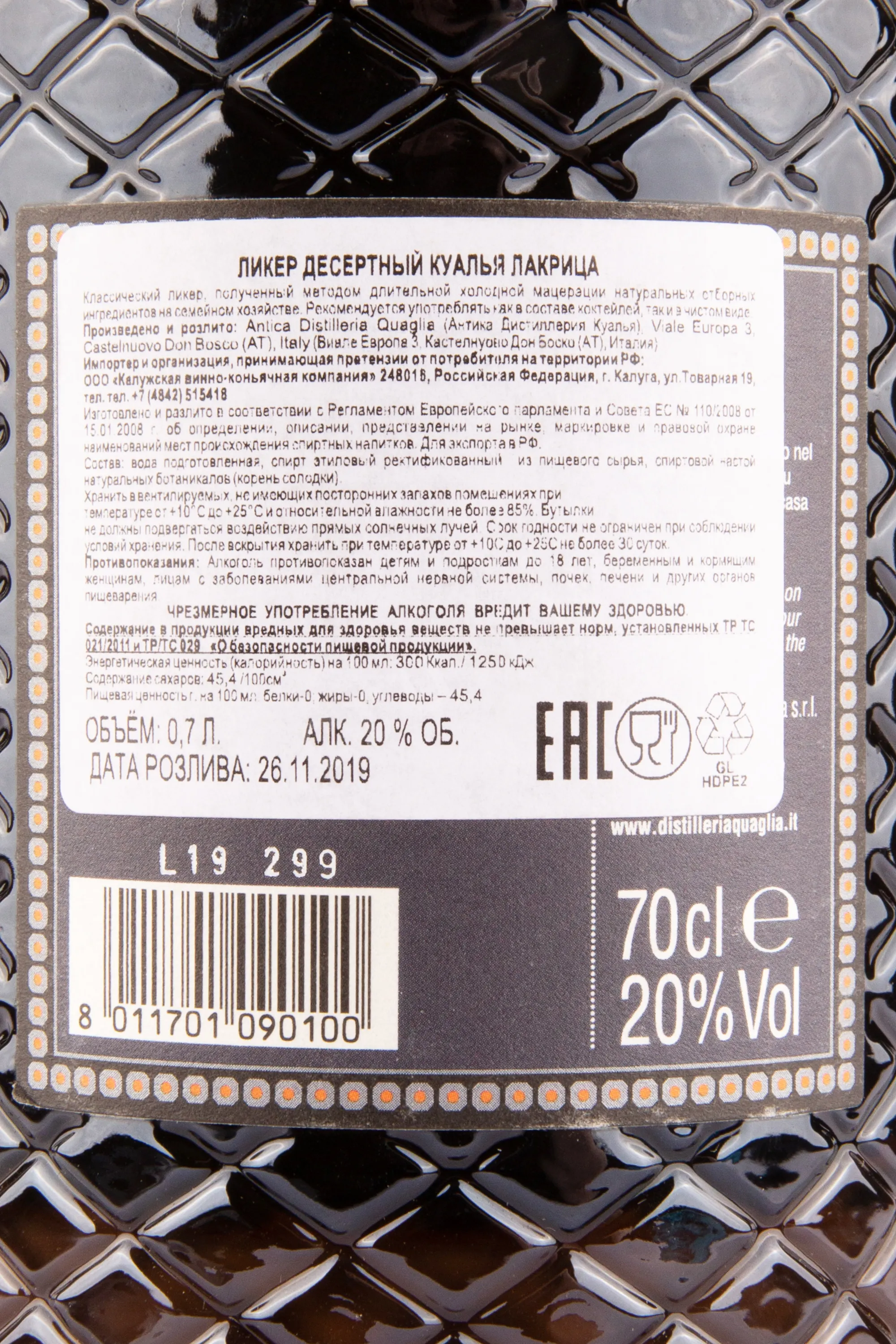 Quaglia Liquorice 0.7 л купить - Ликер Куалья Лакрица цена в магазине