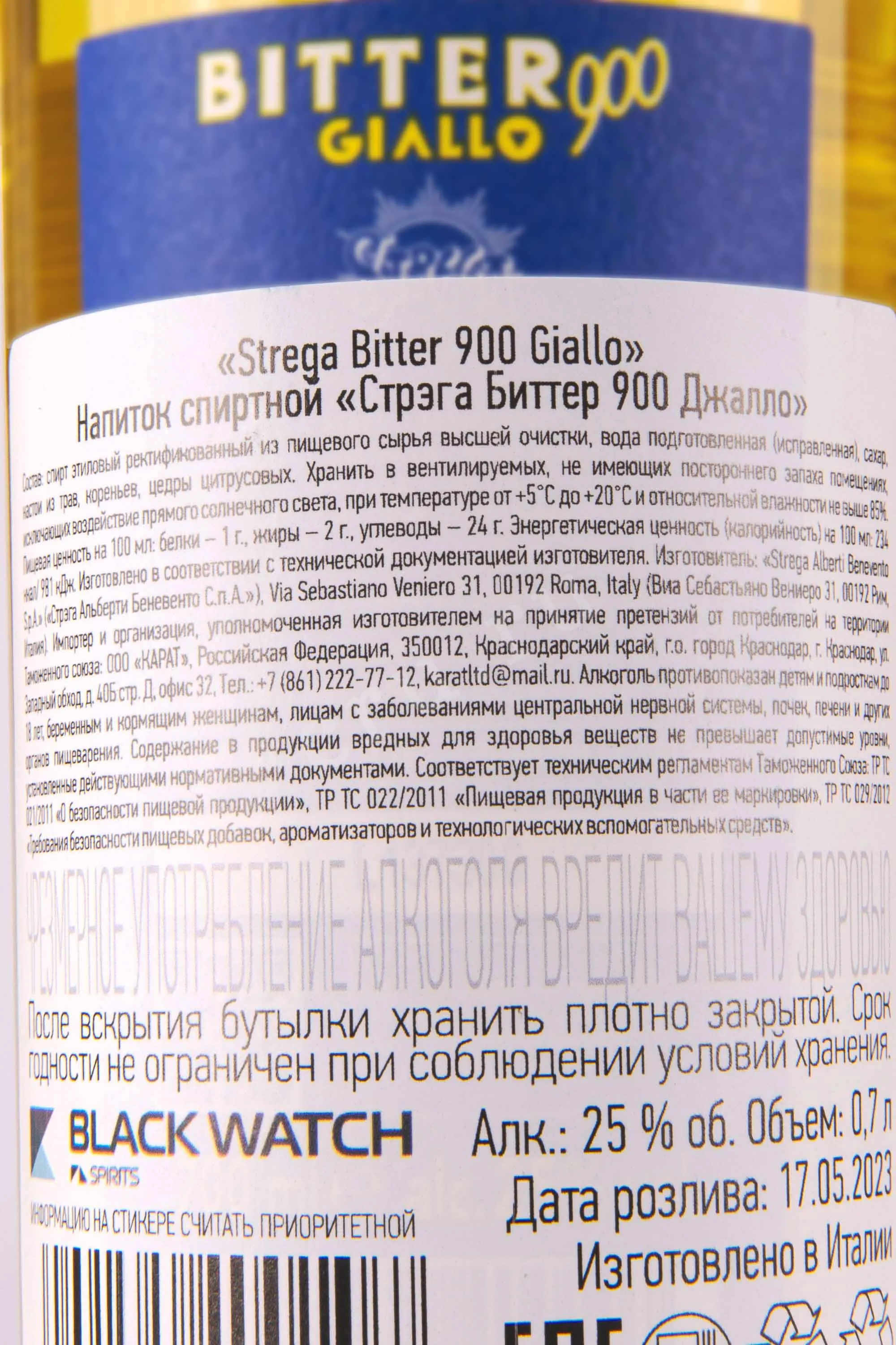 Strega Bitter 900 Giallo 0.7 л купить - Ликер Стрэга Биттер 900 Джалло цена в магазине