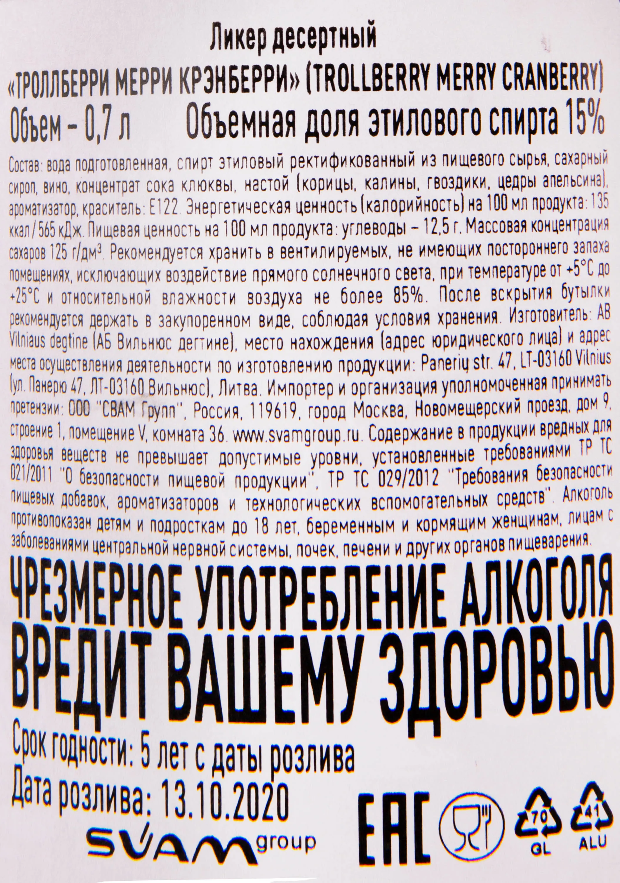Trollberry Merry Cranberry 0.7 л купить - Ликер Троллберри Мэрри Кранберри цена в магазине
