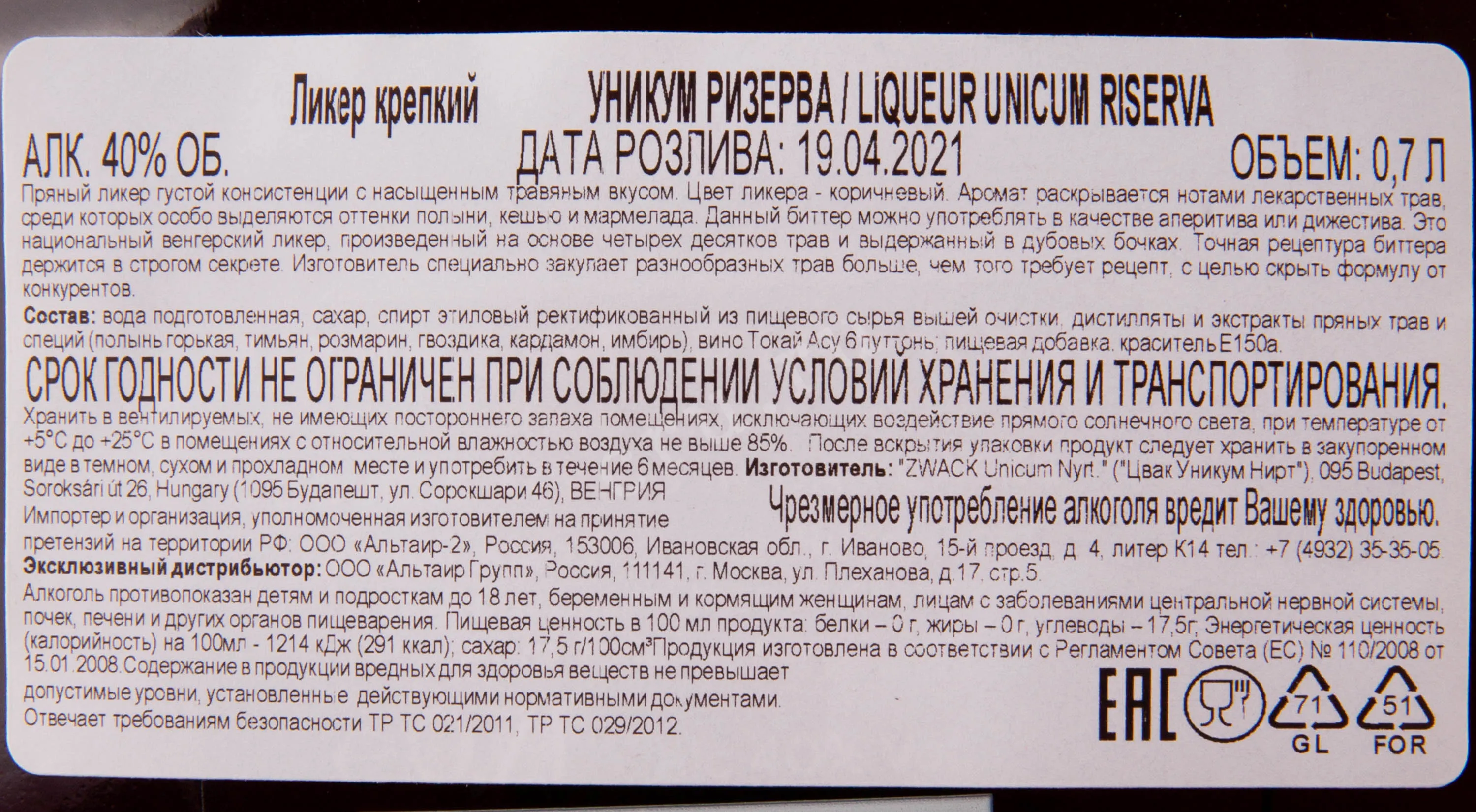 Ликер Unicum Riserva with gift box 0.7 l – это венгерский алкоголь десертной категории, созданный из дистиллятов 40 трав и специй. Сначала 40-процентный напиток выдерживается в старой дубовой бочке, затем его переливают в сосуд из-под сладкого токайского вина, а на последнем этапе это же вино винтажа 2007 года смешивается с ликером. Пряный алкоголь представлен в стильном подарочном боксе.