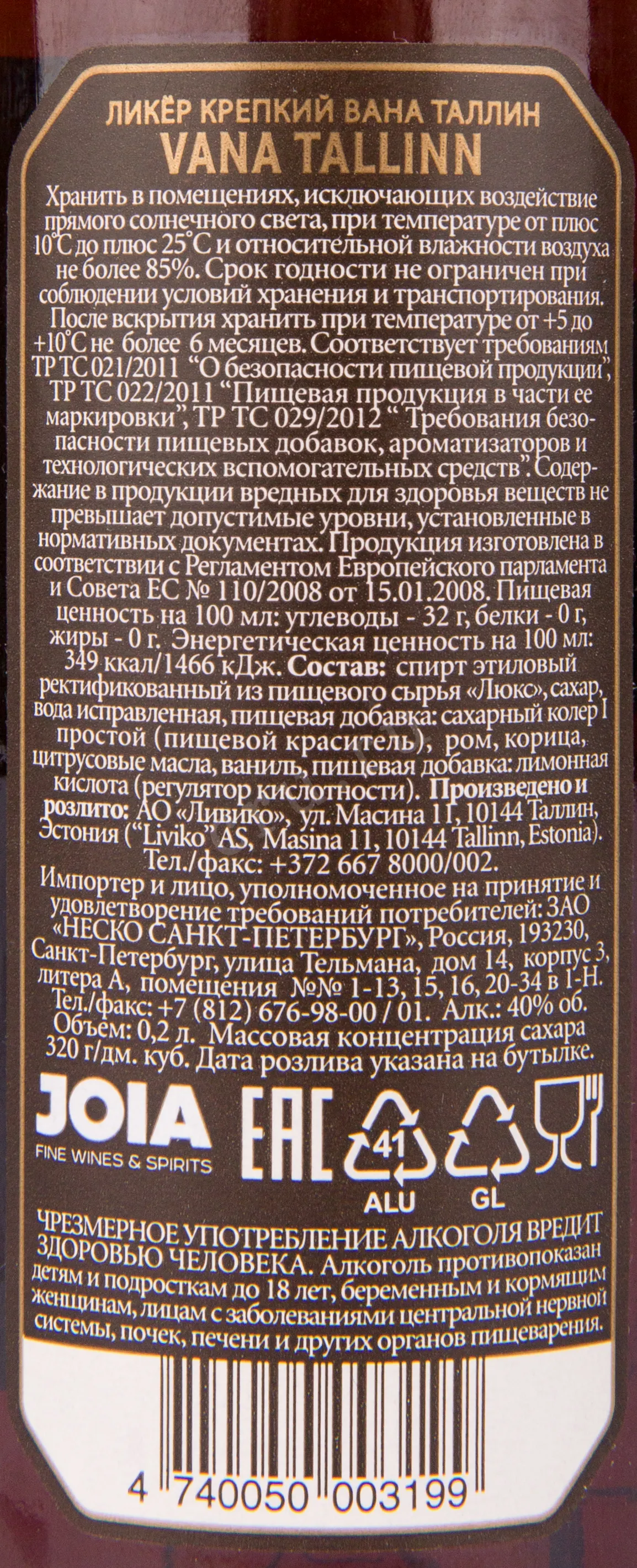 Vana Tallinn 40% 0.2 л купить - Ликер Вана Таллин 40% цена в магазине