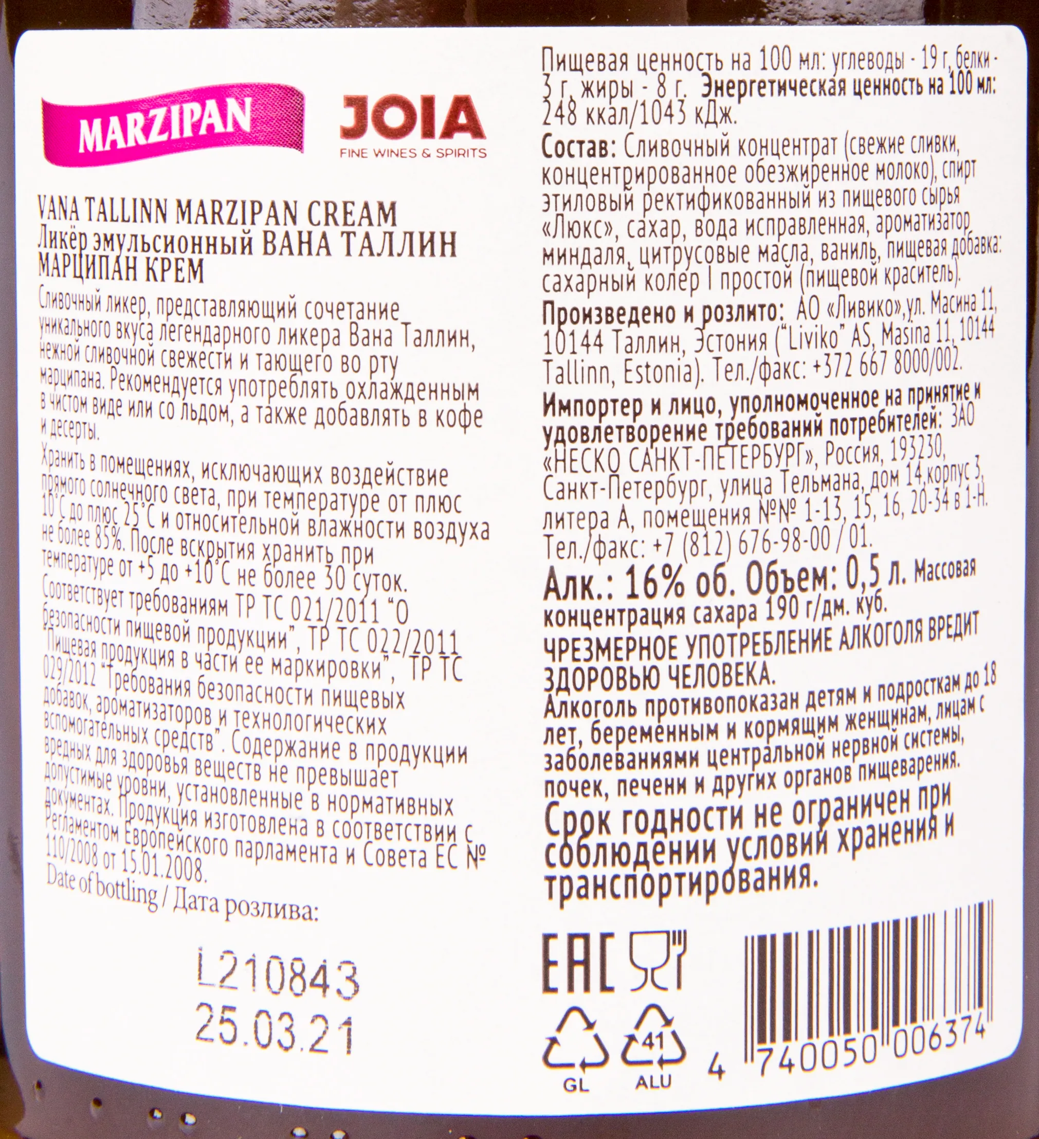 Ликер Vana Tallinn Marzipan 0.5 l – это сливочный эстонский алкоголь, изготовленный на основе ямайского рома с пряными, цитрусовыми и травяными добавками. Разливается 16-процентный напиток в сосуды, украшенные цветочным орнаментом.