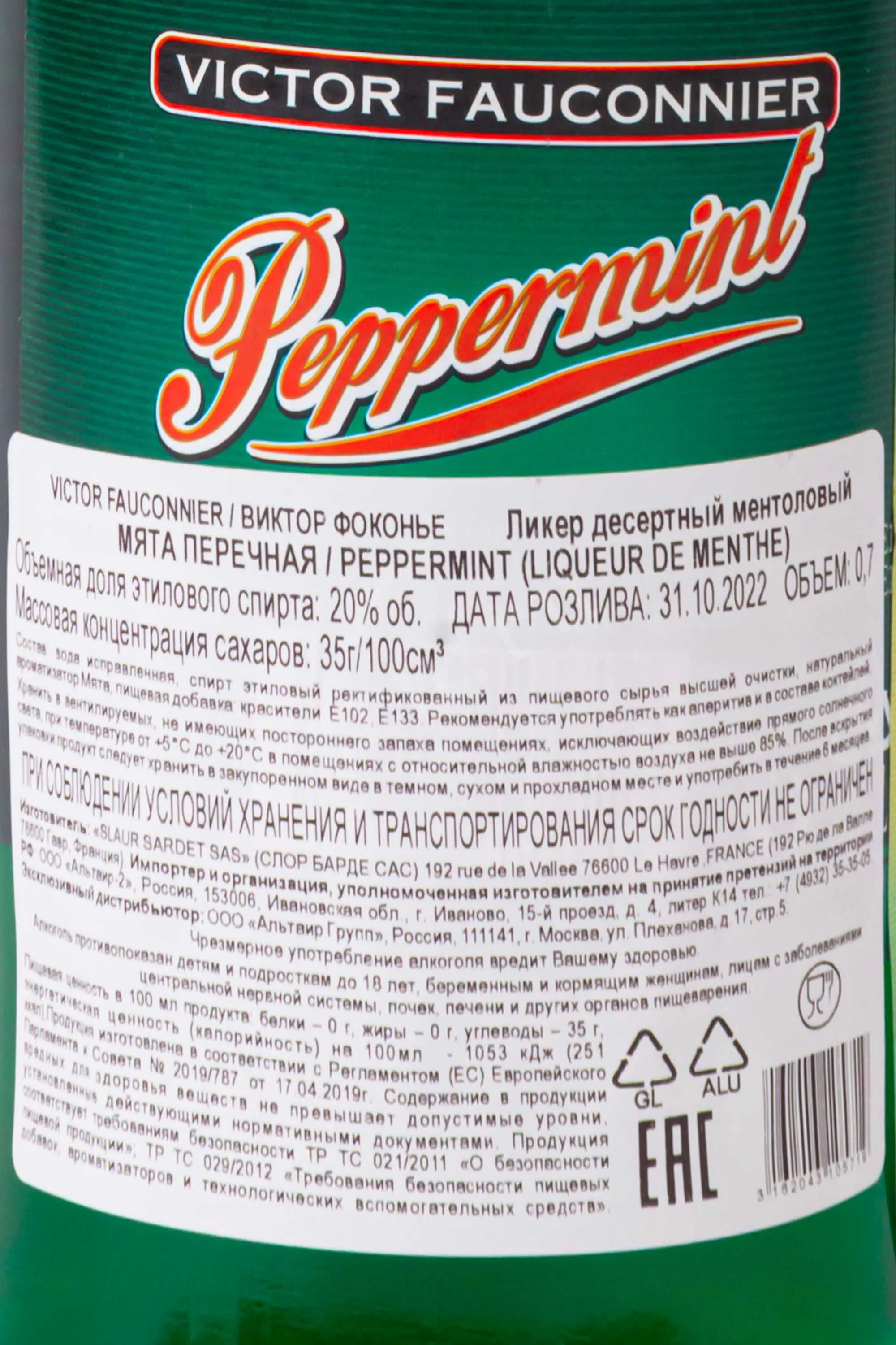 Victor Fauconnier Peppermint 0.7 л купить - Ликер Виктор Фоконье Мята перечная цена в магазине