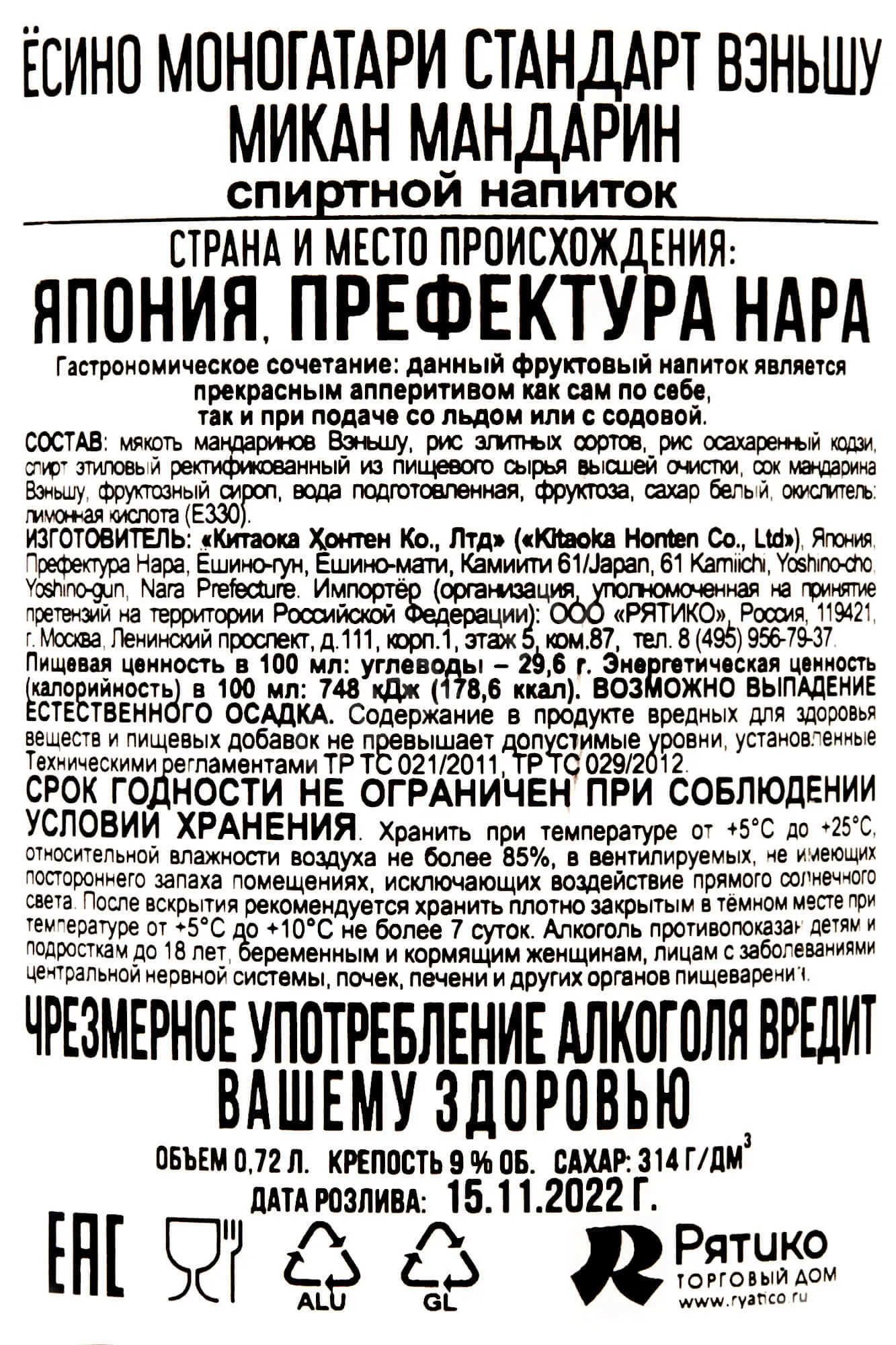 Yoshino Monogatari Standart Wenshu Mikan Mandarine 0.72 л купить - Ликер Ёсино Моногатари Стандарт Вэньшу Микан Мандарин цена в магазине