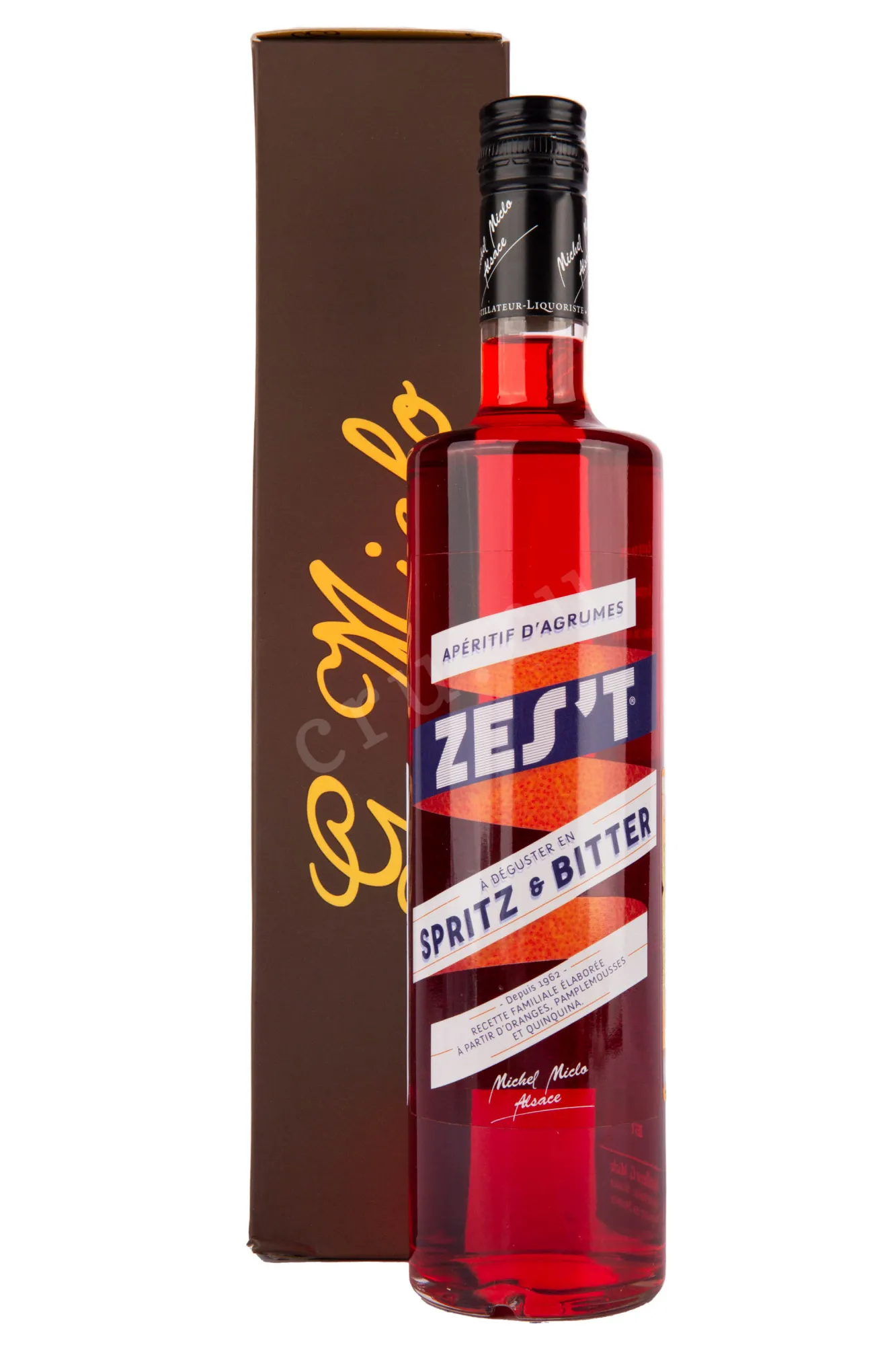 Ликер Zes`t Spritz & Bitter gift box 0.7 l – это французский десертный алкоголь, созданный на основе фруктовых дистиллятов. В состав 18-процентного напитка входят экстракты апельсина, грейпфрута и коры хинного дерева.