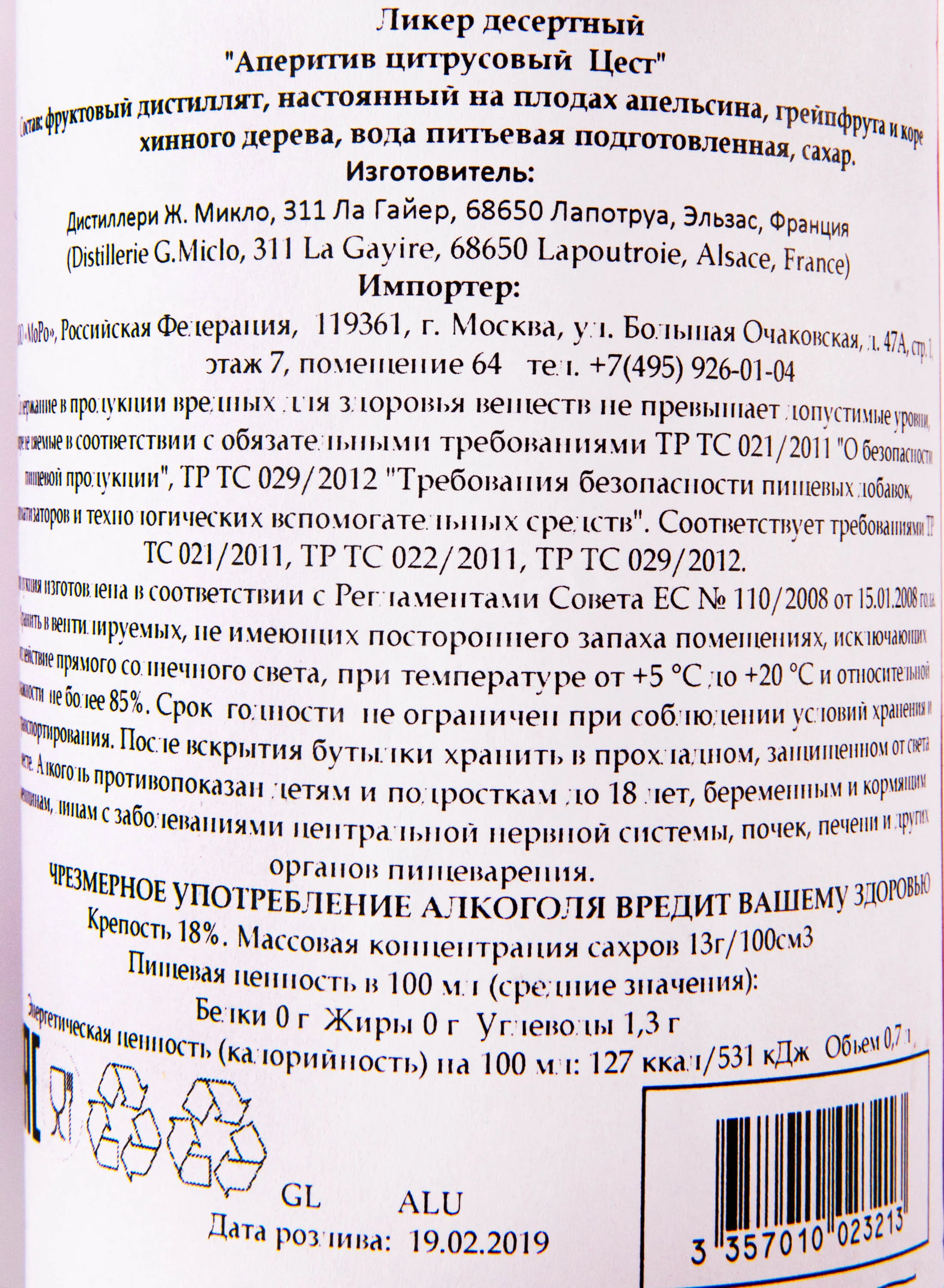 Гастрономические сочетания: является идеальным аперитивом соло или со льдом, а также в составе коктейлей.