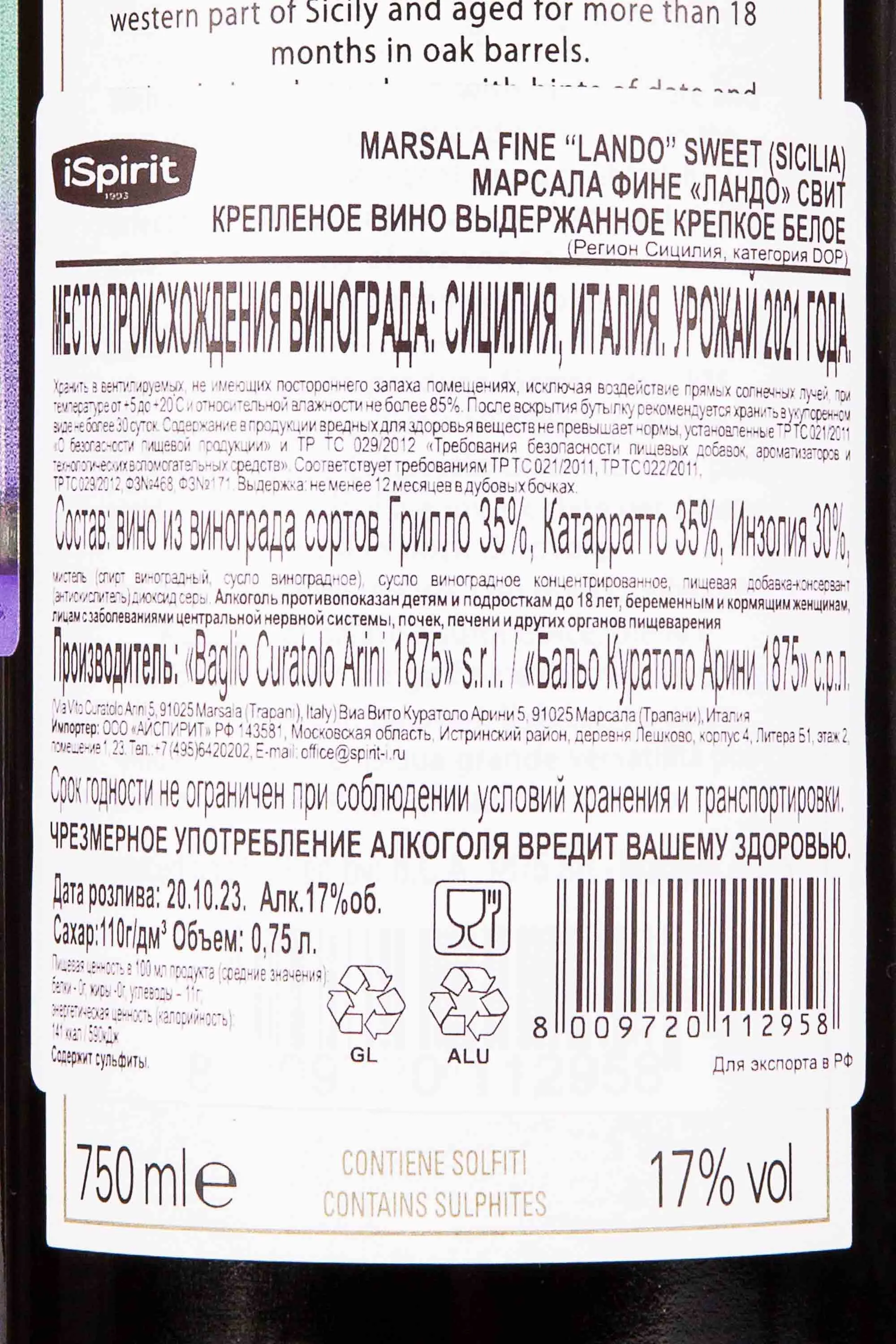 Marsala Fine Lando 2021 0.75 л