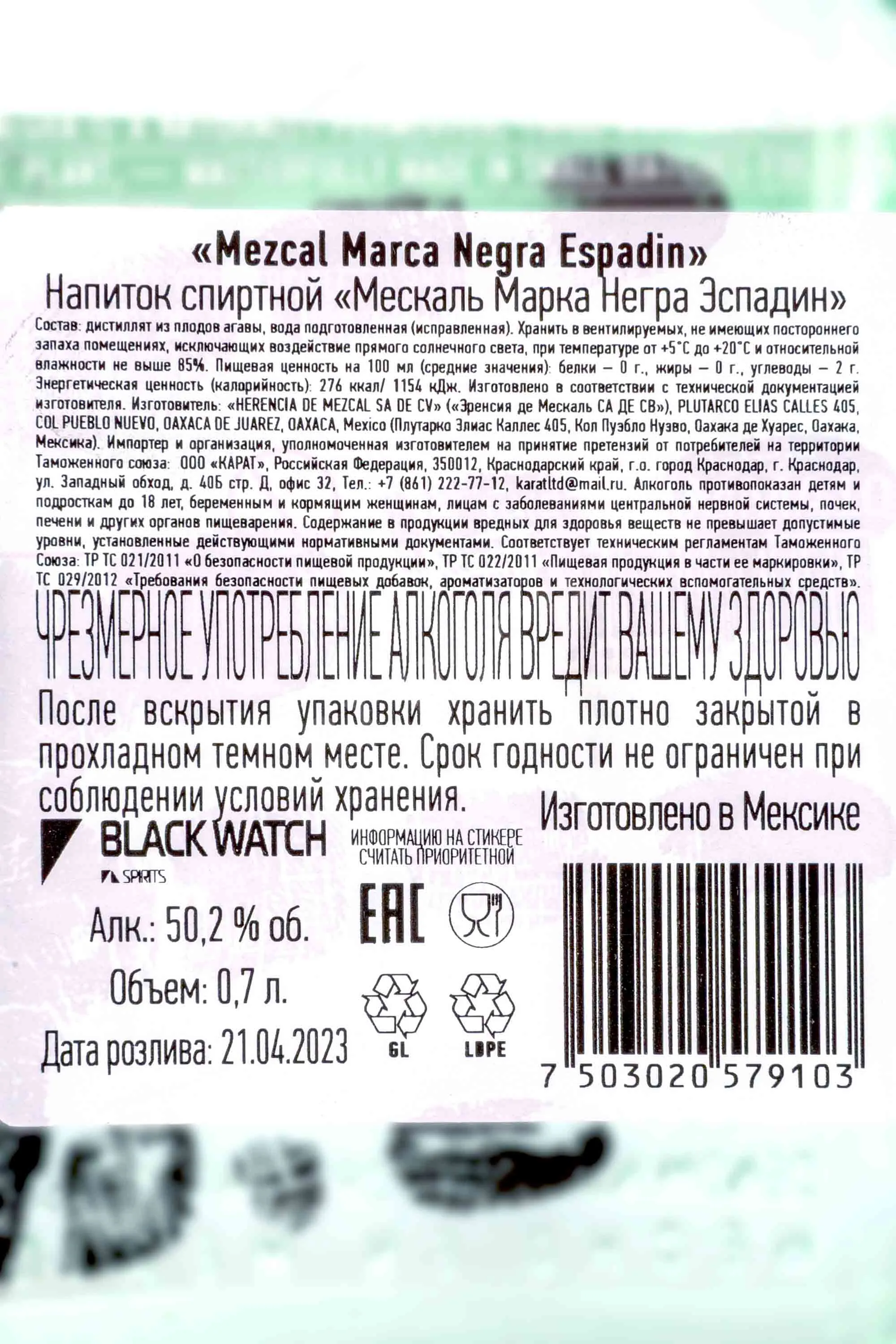 Marca Negra Espadin 0.7 л купить - Мескаль Марка Негра Эспадин цена в магазине