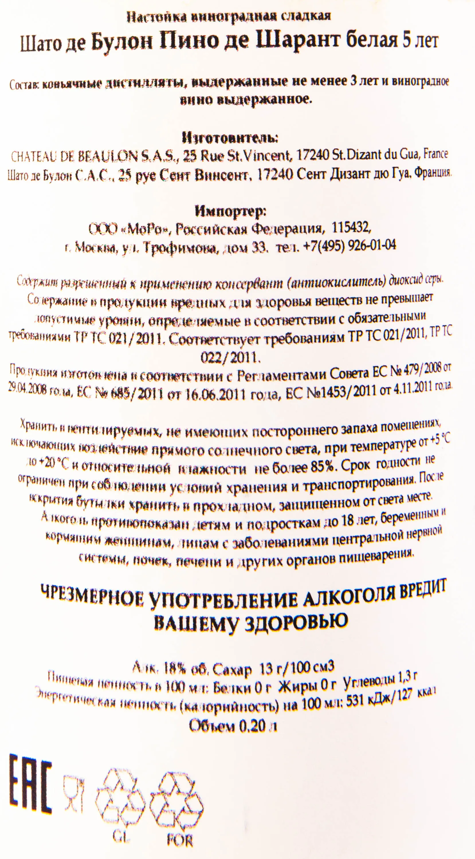Chateau de Beaulon White 5 years 0.2 л купить - Пино де Шарант Шато де Булон Белый 5 лет цена в магазине