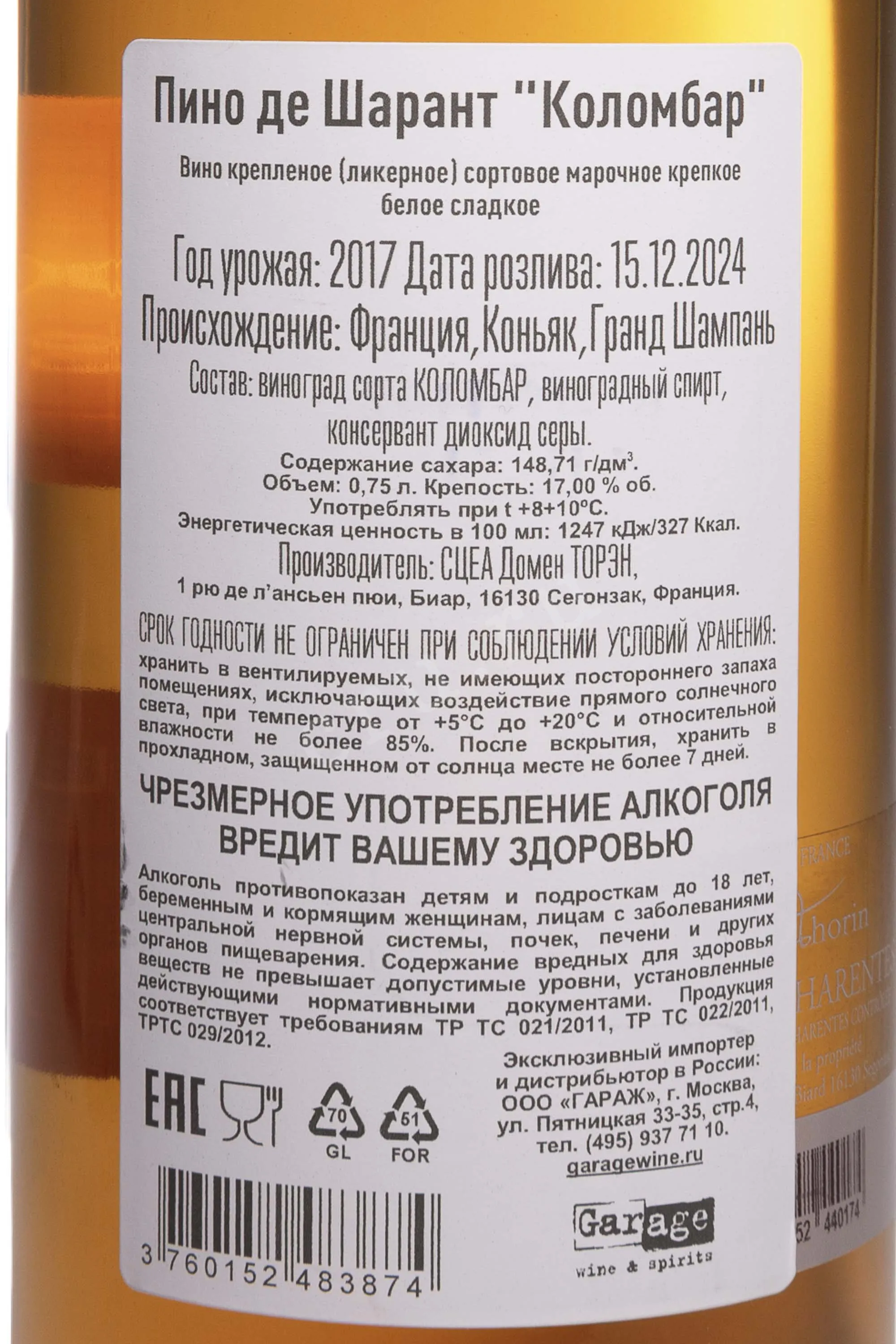Пино де Шарант Claude Thorin Colombard 2012 года 0,75 л относится к редкой категории винтажей, отражающий особенности конкретного урожая. Напиток создан в хозяйстве Клод Торин из винограда, выращиваемого в нескольких терруарах региона Гранд Шампань. Почвы здесь меловые, климат умеренный океанический, с мягким летом и достаточным количеством солнца. 2012 год во Франции был сложным для виноделов из-за нестабильной погоды, но для Шаранты он оказался удачным: тёплая осень позволила сохранить ароматическую чистоту и хорошую кислотность сырья. Производство основано на традиционном методе, при котором свежий виноградный сок сорта Коломбар соединяют с молодым коньяком, после чего ферментация останавливается естественным образом. Далее напиток выдерживается в дубовых бочках около 9 лет. Уникальность этого Пино де Шарант заключается в его винтажном характере и длительной выдержке, что редко встречается в данной категории и высоко ценится знатоками.