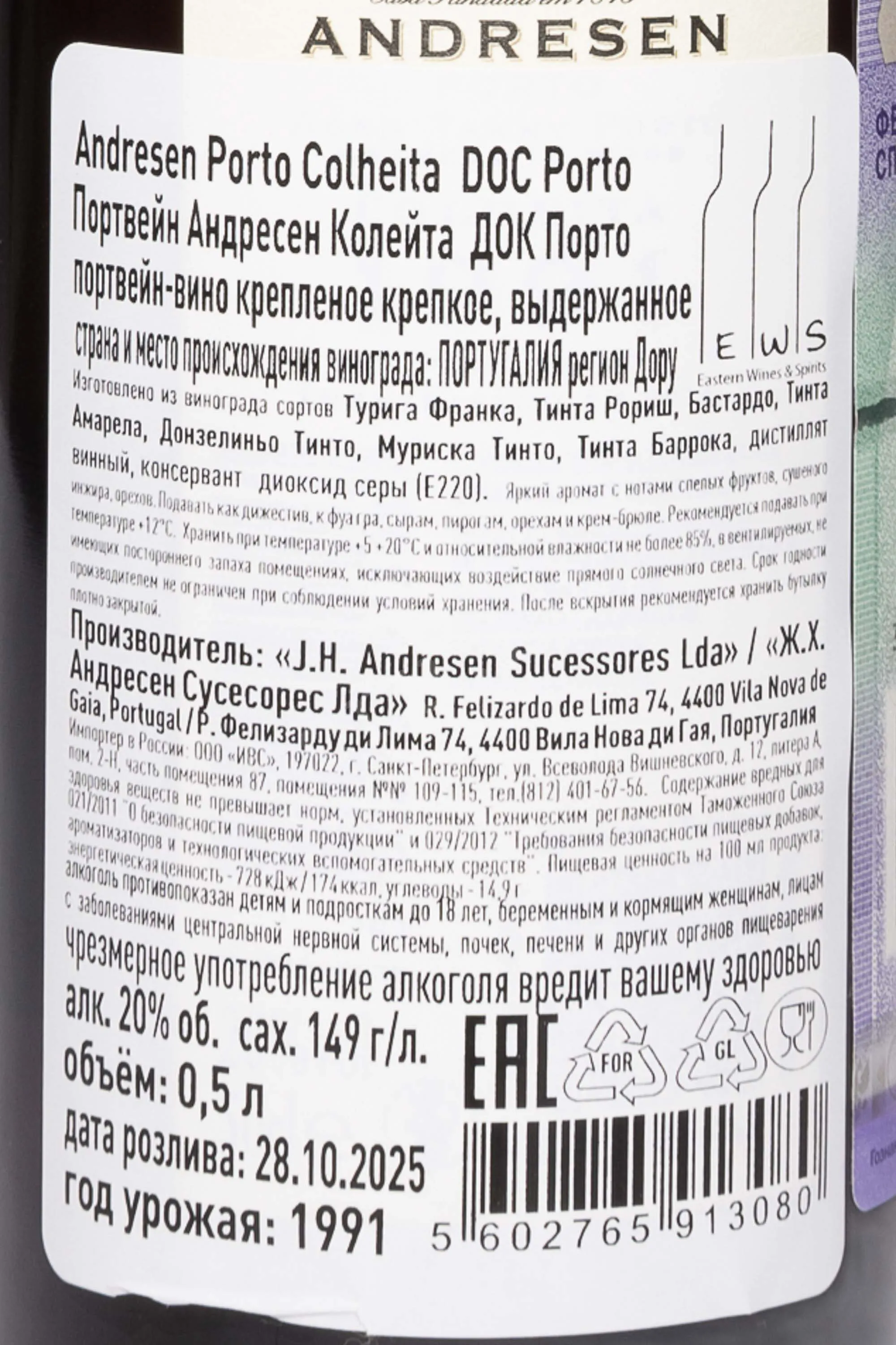Andresen Colheita DOC in tube 1991 0.5 л купить - Портвейн Андресен Колейта ДОК в тубе цена в магазине г. Москва, ул. Профсоюзная, д. 16/10 10:00-22:00 Ежедневно +7 (495) 920-20-02 info@cru.ru