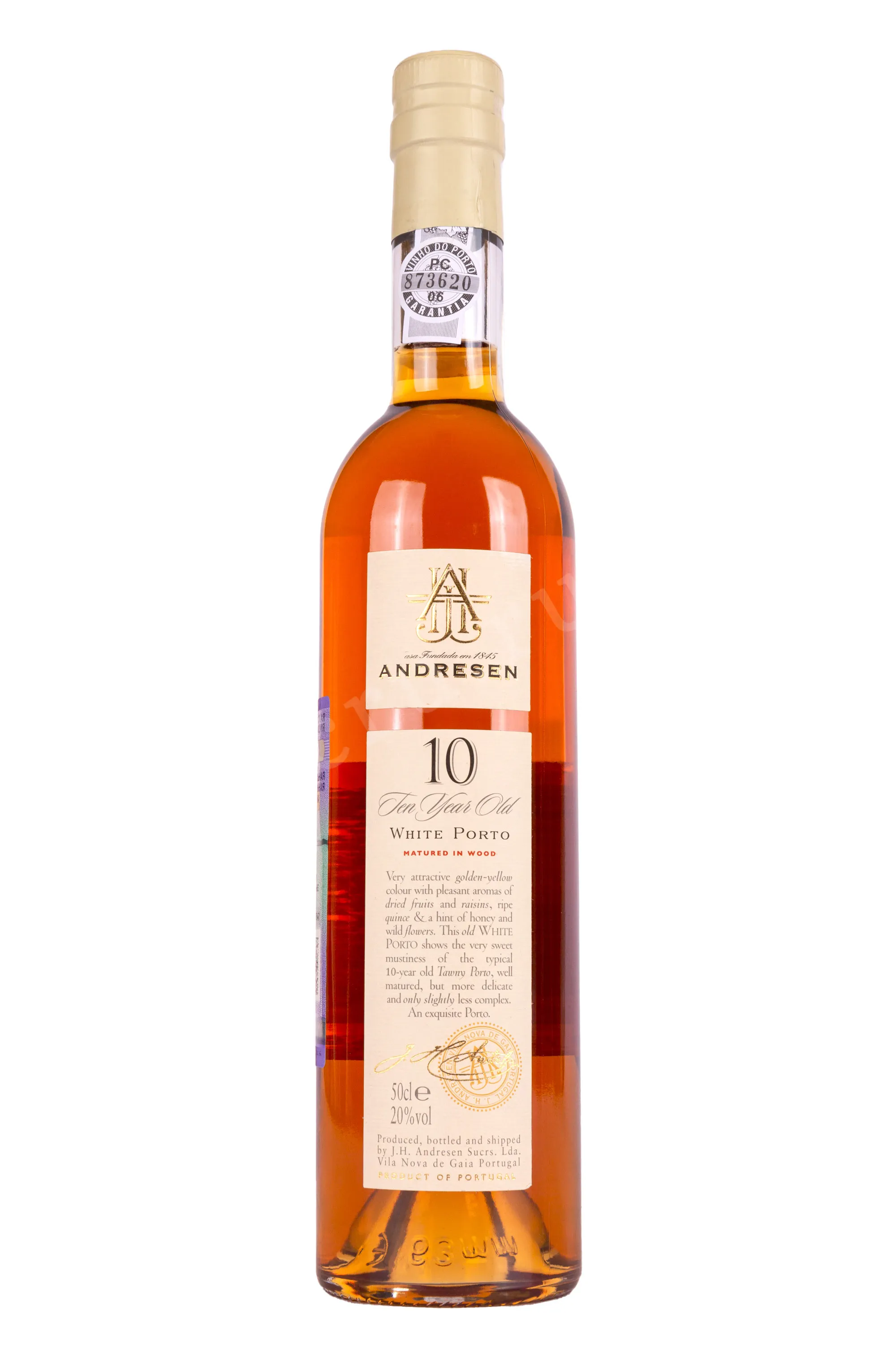Портвейн Andresen White Porto 10 years Old in tube 0.5 l – это элегантное португальское белое крепленое вино, выдержанное в дубовых барриках в течение 10 лет. 20-процентный порто был отмечен серебряными медалями на дегустационных конкурсах в Лондоне и Брюсселе. Сладкий портвейн представлен в фирменных тубах.