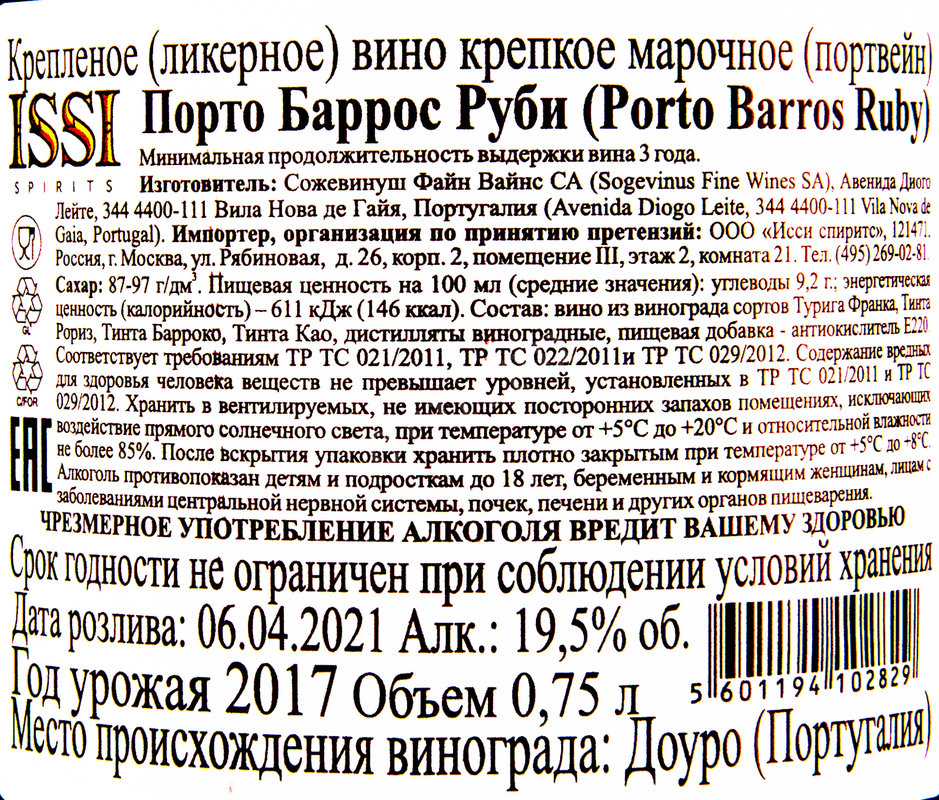 Barros Ruby 2018 0.75 л купить - Портвейн Баррос Руби цена в магазинег. Москва, ул. Профсоюзная, д. 16/1010:00-22:00 Ежедневно+7 (495) 920-20-02info@cru.ru