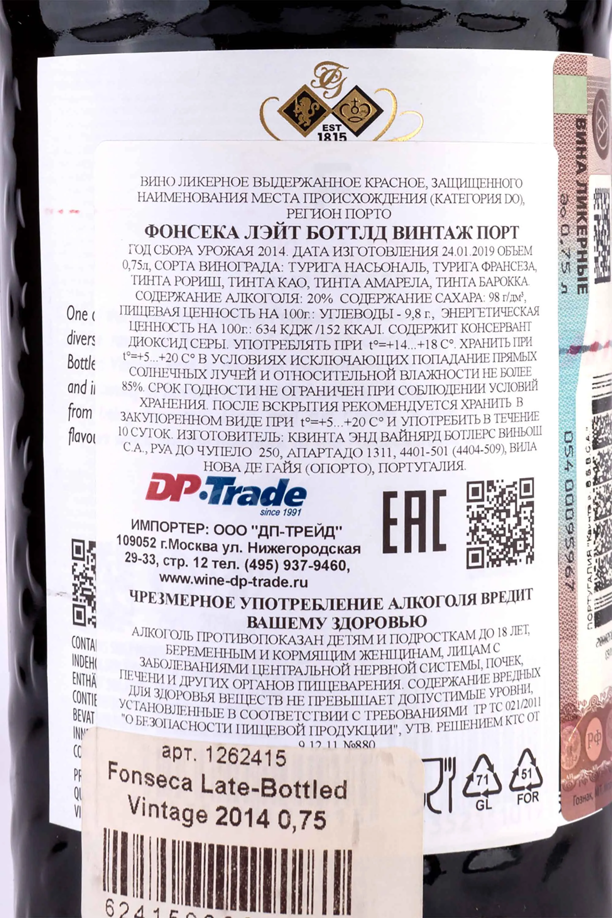 Фонсека Лэйт Боттлд Винтаж Порт 2014 0.75