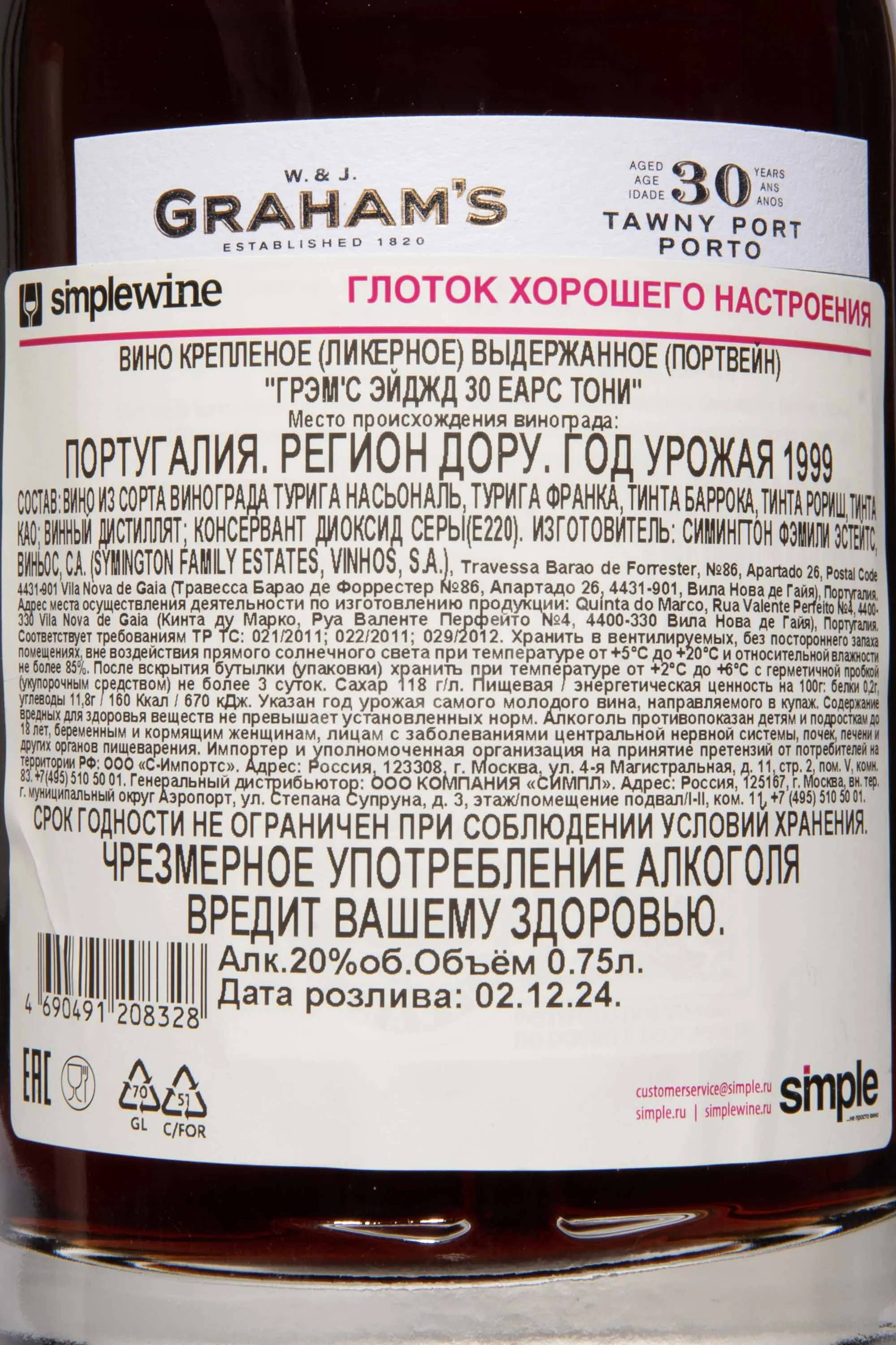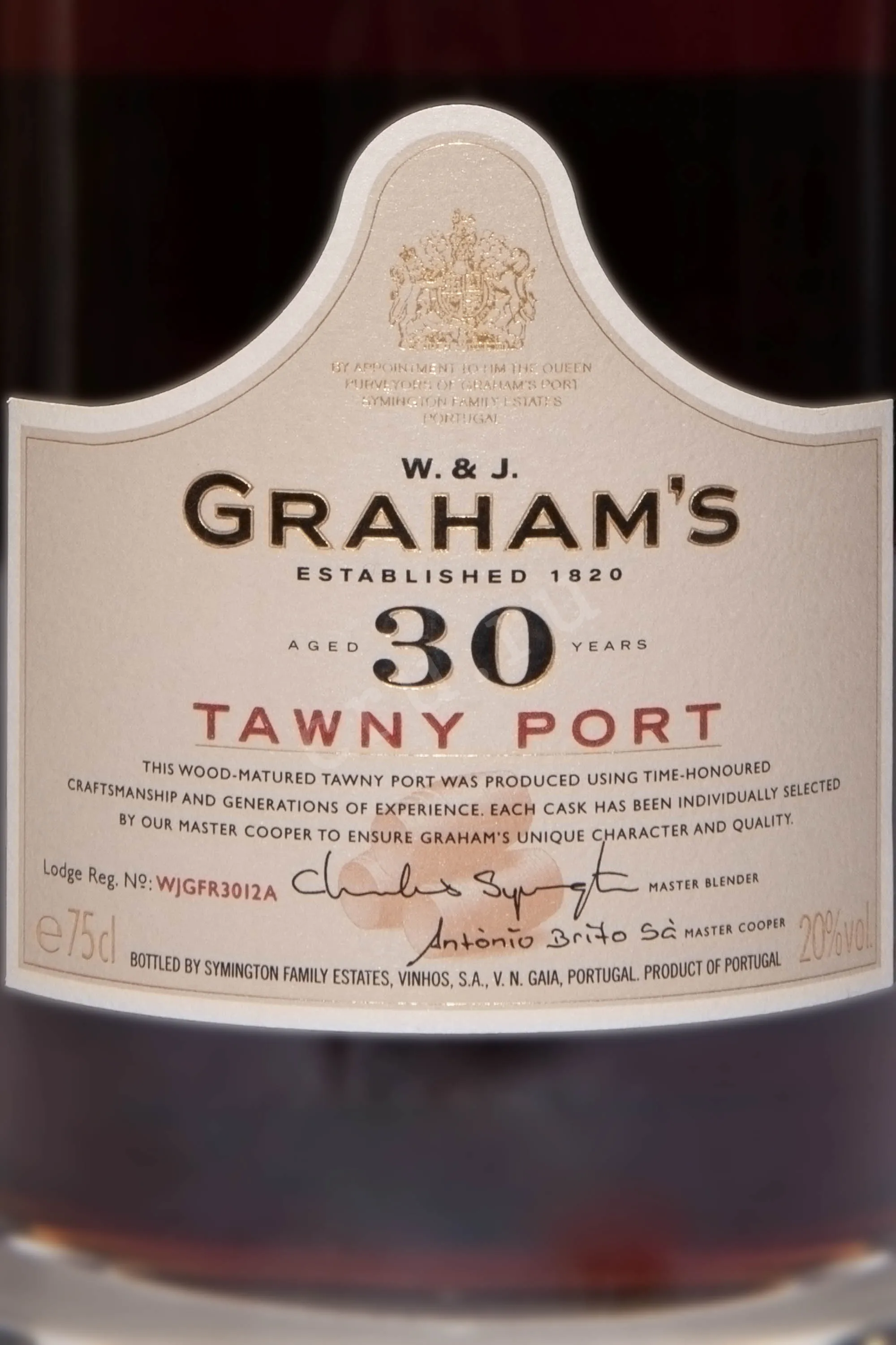 Портвейн Grahams 30 years Tawny 0.75 л - красное крепленое португальское сладкое вино из региона Дору. Выдержка составляет около тридцати лет, порто из вин очень высокого качества, которые при ассамбляже настаиваются до пика зрелости. 30-летний портвейн — отличный подарок на юбилей и жемчужную свадьбу.