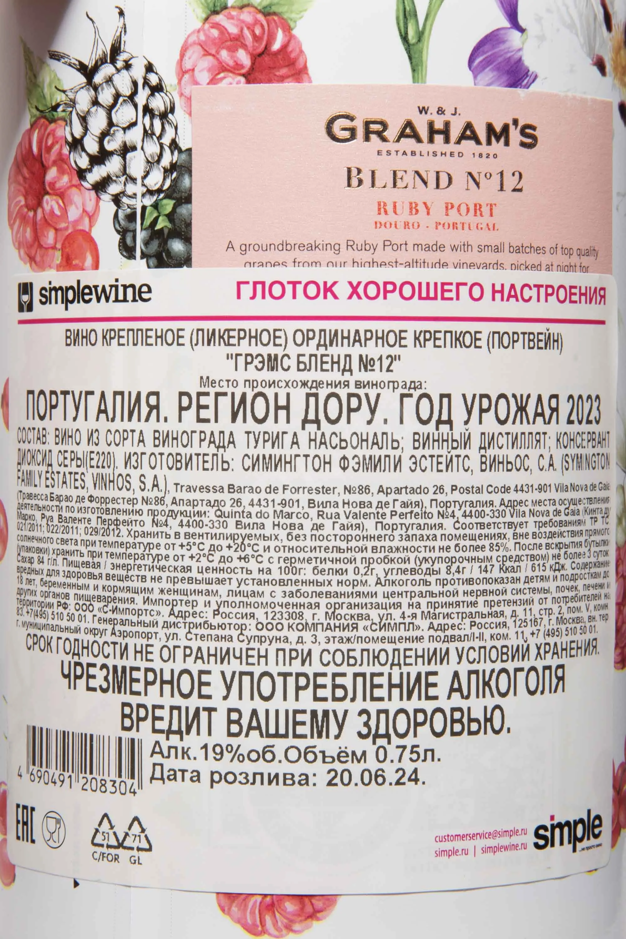 Grahams Blend No. 12 Ruby Port 2023 0.75 л купить - Портвейн Грэмс Бленд № 12 Руби Порт цена в магазине г. Москва, ул. Профсоюзная, д. 16/10 10:00-22:00 Ежедневно +7 (495) 920-20-02 info@cru.ru