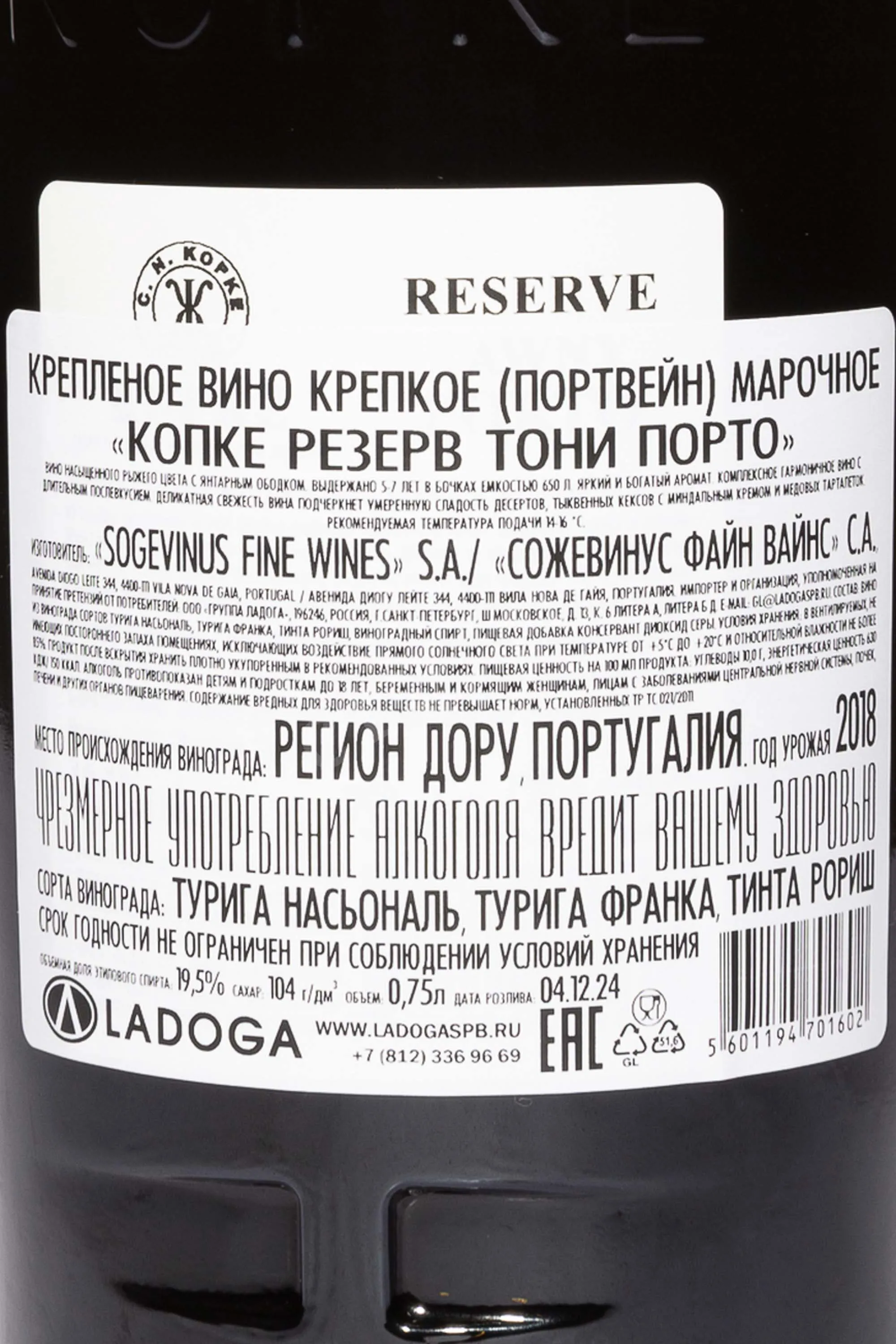 Портвейн Kopke Reserve Tawny 2018 года 0,75 л — изысканный представитель классического стиля старейшего португальского дома Копке, основанного в 1638 году. Вино создано из винограда, собранного на террасных склонах Дору, где каменистые почвы и жаркий континентальный климат способствуют концентрации сахаров и ароматов. 2018 год отличался теплым летом и умеренно влажной весной, что дало ягодам идеальный баланс зрелости и кислотности. Ферментация проходила в гранитных лагарах. После крепления вино выдерживалось не менее 5 лет в дубовых бочках объемом 650 л. Это позволило портвейну приобрести мягкость, ореховые тона и характерный янтарный оттенок. Копке Резерв Тони ценится критиками за гармоничную структуру и глубокую вкусовую палитру, а винный дом регулярно отмечается в международных рейтингах.