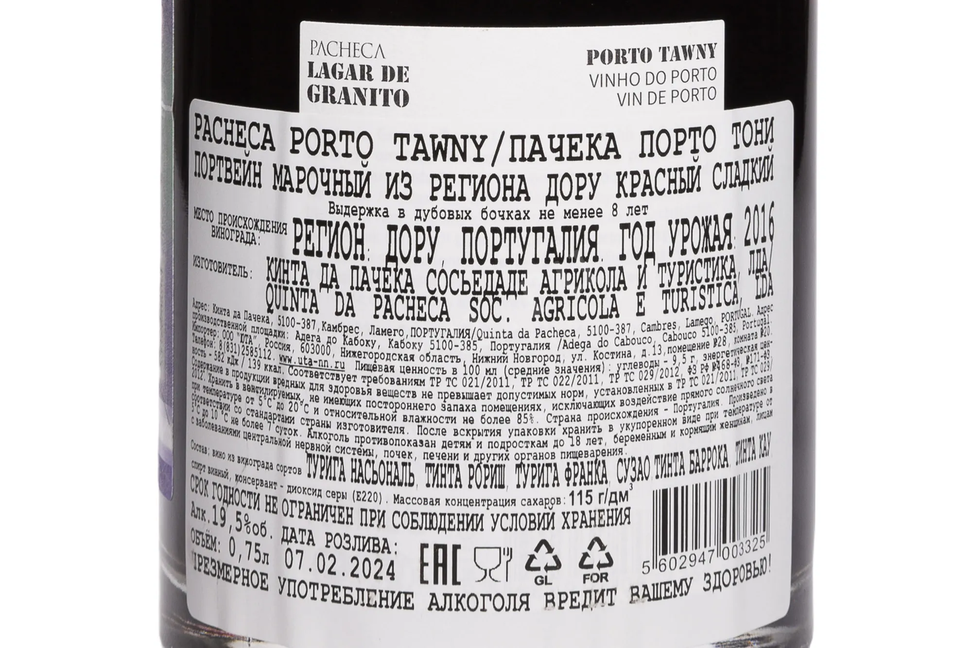 Портвейн Pacheca Lagar De Granito Tawny 2016 г. 0,75 л создан из винограда традиционных для португальского региона Дору сортов. Ягоды собрали на крутых гранитных склонах, где каменистая почва ограничивает рост лозы и делает плоды более концентрированными. Урожай раздавили и сбродили в традиционных каменных лагарах. Чтобы остановить брожение и закрепить требуемый уровень сахаристости, в сусло добавили виноградный спирт, а затем купаж отправили на созревание в небольшие дубовые бочки. За минимум 8 лет выдержки в контакте с древесиной напиток приобрел сложность, мягкую текстуру и стабильность вкуса.