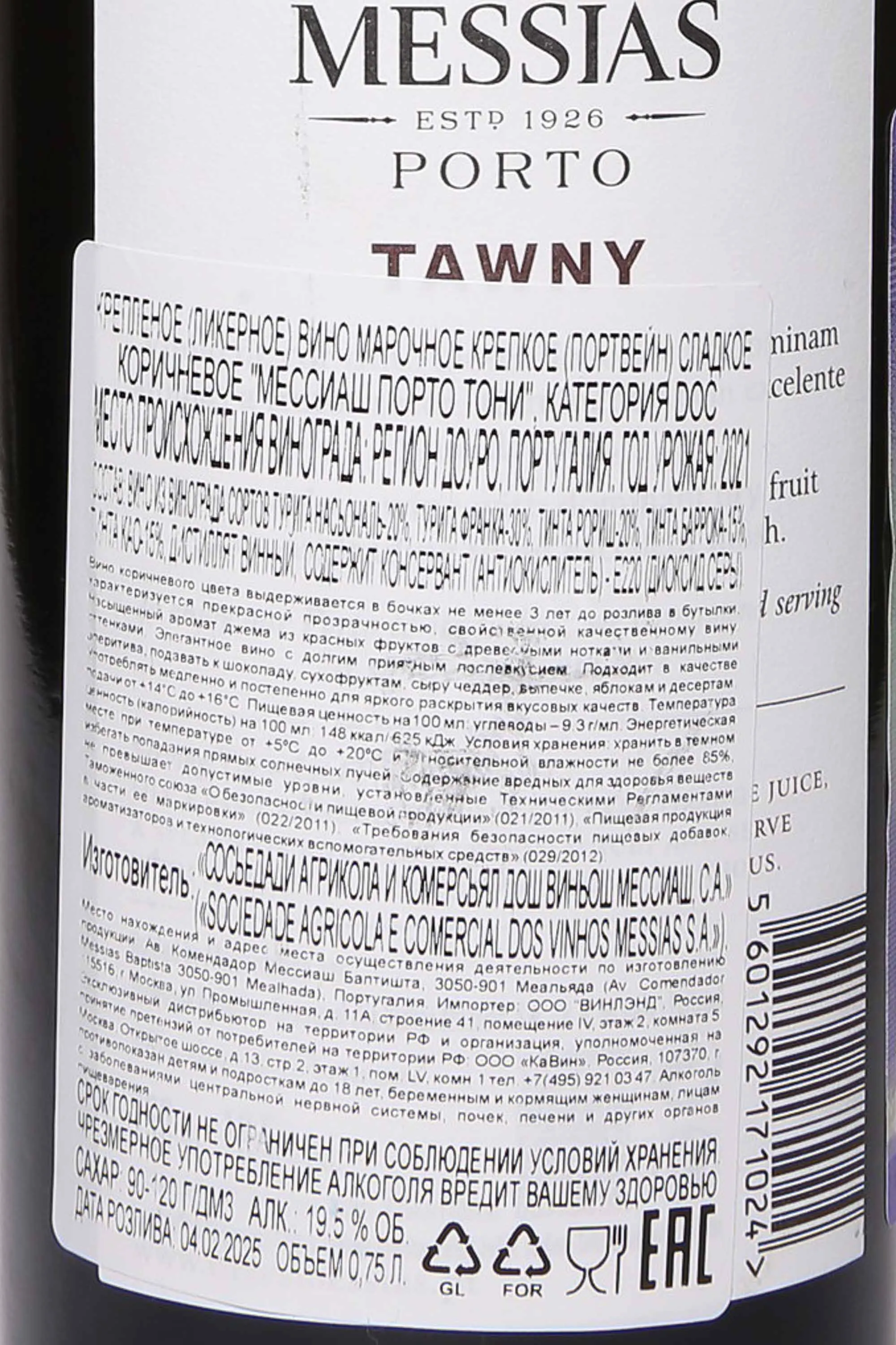 Портвейн Messias Porto Tawny 0.75 l — это португальское сладкое крепленое вино, производимое из местных сортов винограда Долины Дору. Порто крепостью 19.5% выдерживается в барриках из французского дуба в течение трех лет и имеет потенциал хранения до 10 лет.
