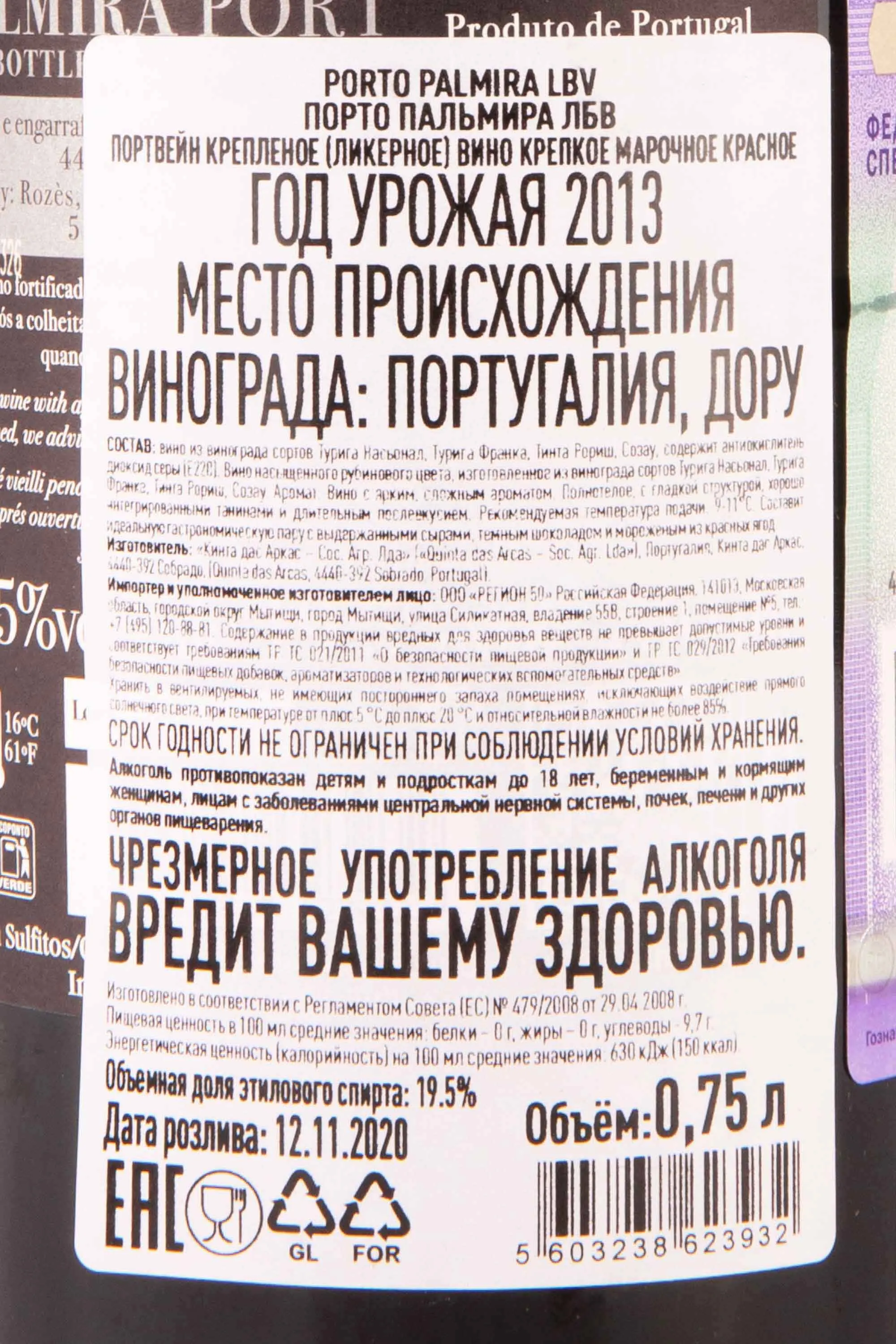 Palmira LBV Port 2013 0.75 л купить - Портвейн Пальмира ЛБВ Порт цена в магазинег. Москва, ул. Профсоюзная, д. 16/1010:00-22:00 Ежедневно+7 (495) 920-20-02info@cru.ru