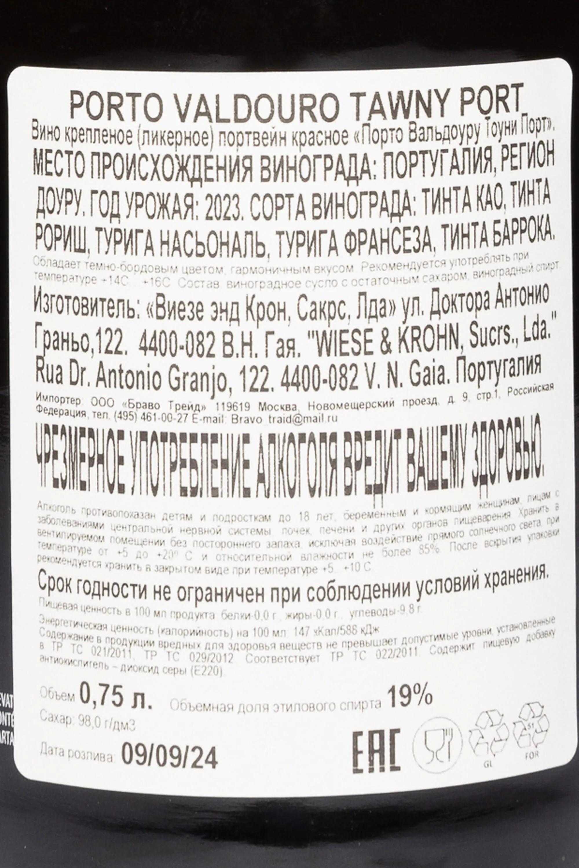 Портвейн Valdouro Tawny 0.75 l – это сладкий португальский алкоголь из красного винограда местных сортов. 19-процентное крепленое вино созревает в дубовых бочках не менее трех лет и имеет потенциал хранения более 5 лет.