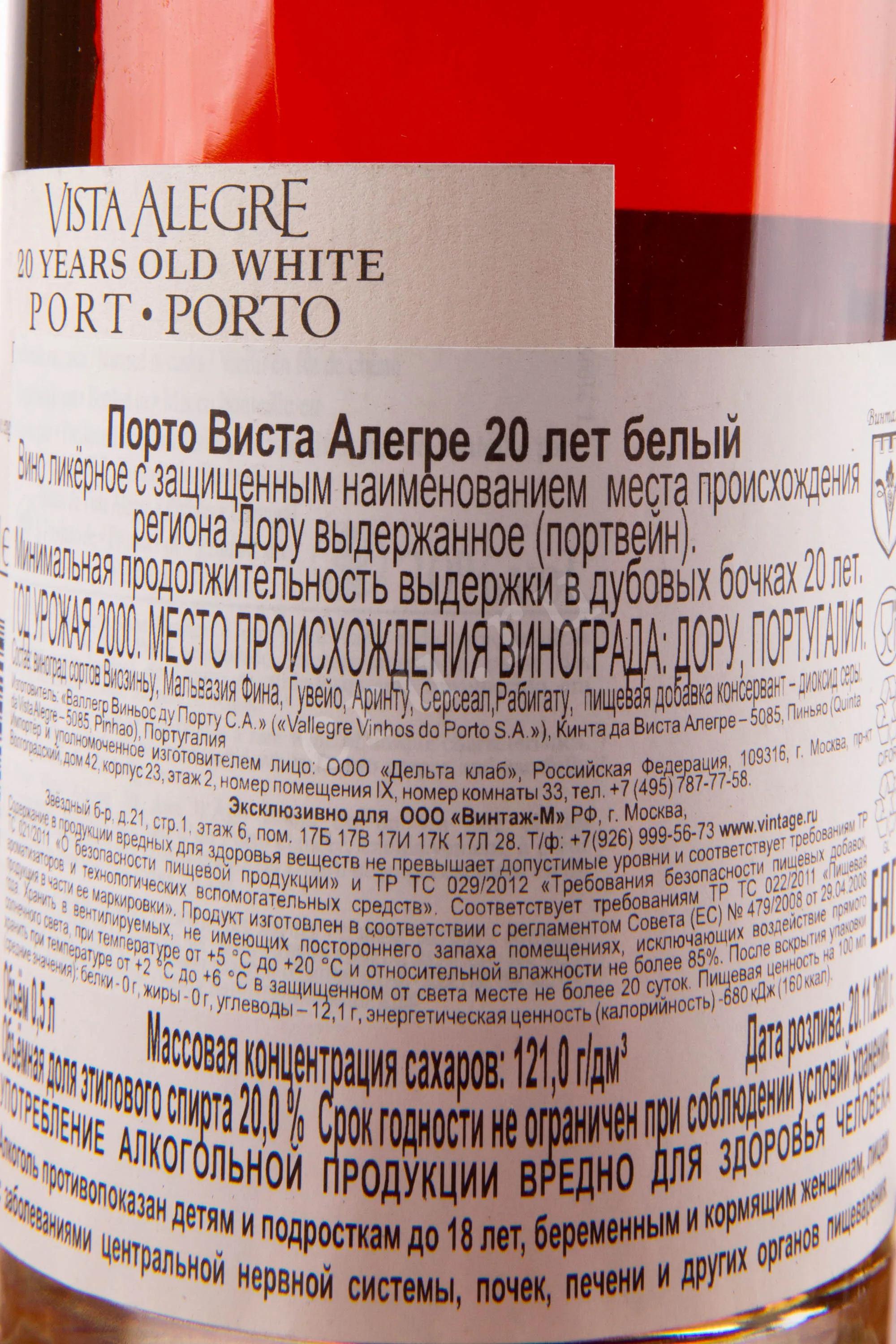 Vista Alegre 20 years Old White 2000 0.5 л купить - Портвейн Виста Алегре 20 лет Олд Уайт цена в магазине г. Москва, ул. Профсоюзная, д. 16/10 10:00-22:00 Ежедневно +7 (495) 920-20-02 info@cru.ru