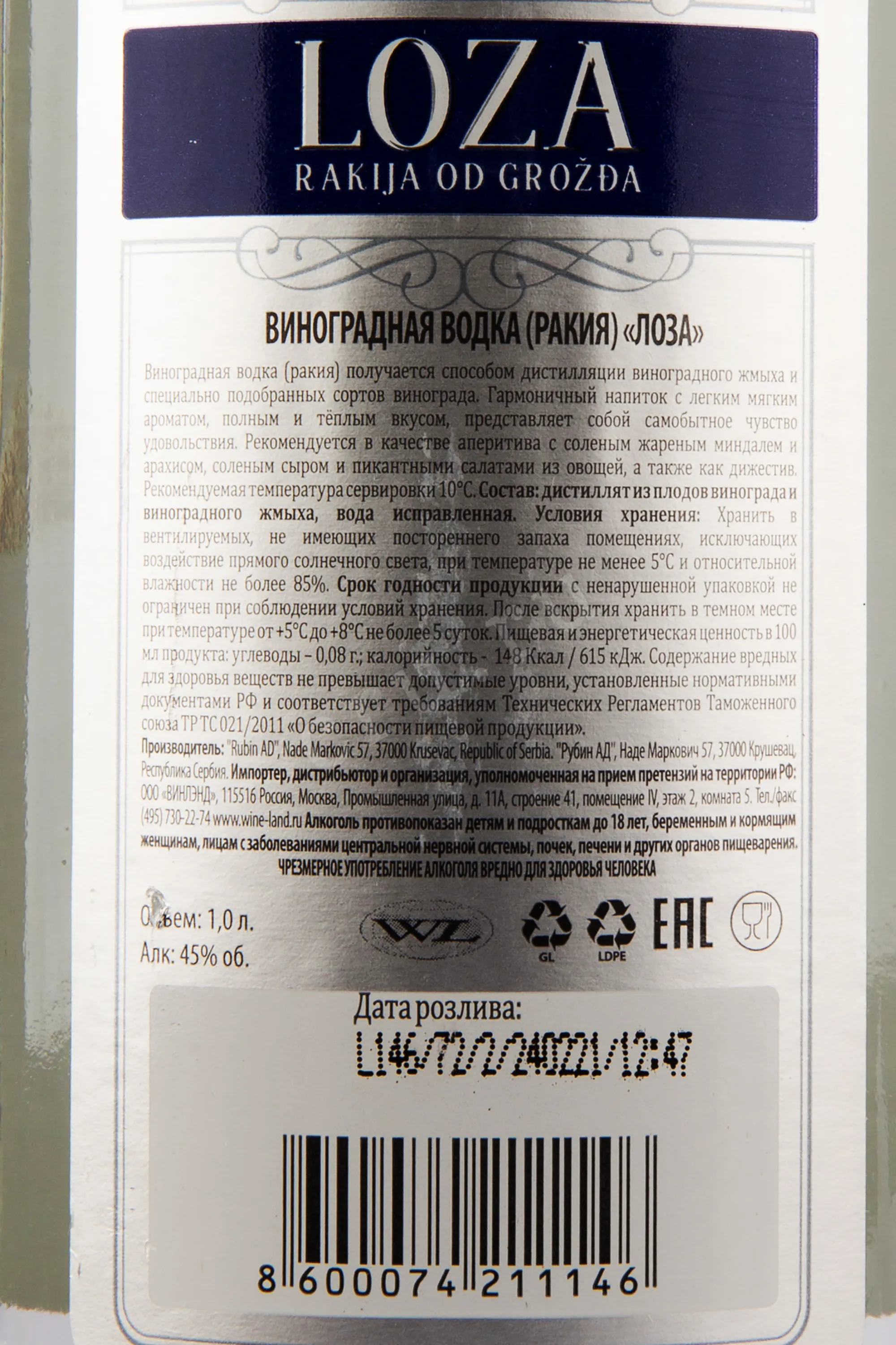 Rubin Loza 1 л купить - Ракия Рубин Лоза цена в магазине г. Москва, ул. Профсоюзная, д. 16/10 10:00-22:00 Ежедневно +7 (495) 920-20-02 info@cru.ru
