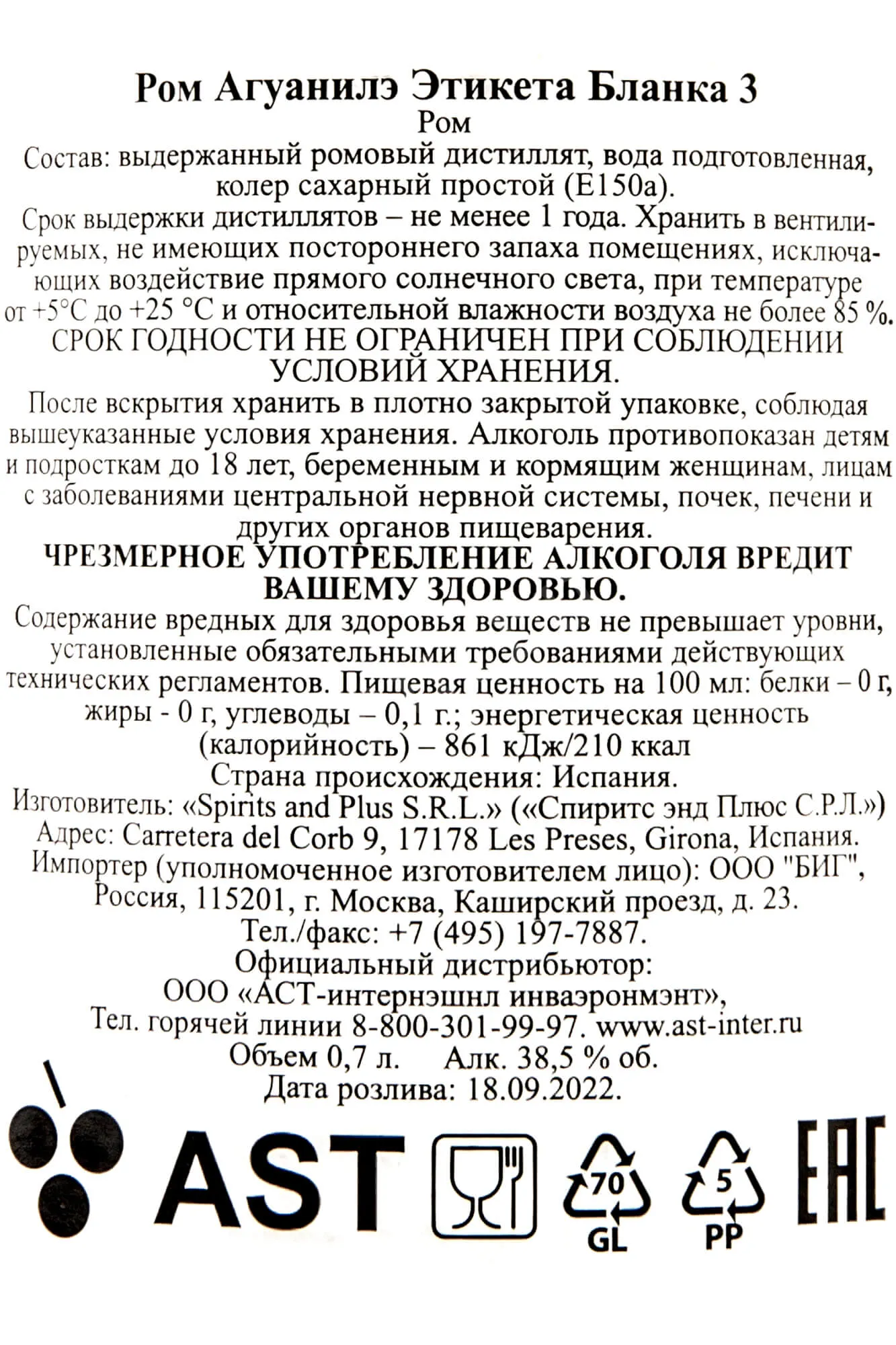 Aguanile Etiqueta Blanca 3 0.7 л купить - Ром Агуанилэ Этикета Бланка З цена в магазине г. Москва, ул. Профсоюзная, д. 16/10 10:00-22:00 Ежедневно +7 (495) 920-20-02 info@cru.ru